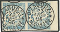 | 2248 | MAYOTTE. Précurseurs. CG 3 (pli) et 5 (pelurage), obl losange évidé bleu. - TB (cote Yvert) | 2 | 445€ | 120€ | - | ||