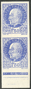 | ** | 1002 | NON DENTELES. ** Impression sur raccord. No 552c, paire verticale bdf, sans la surcharge. - TB. - R (cote Yvert) | 2 | - | 900€ | - | |
