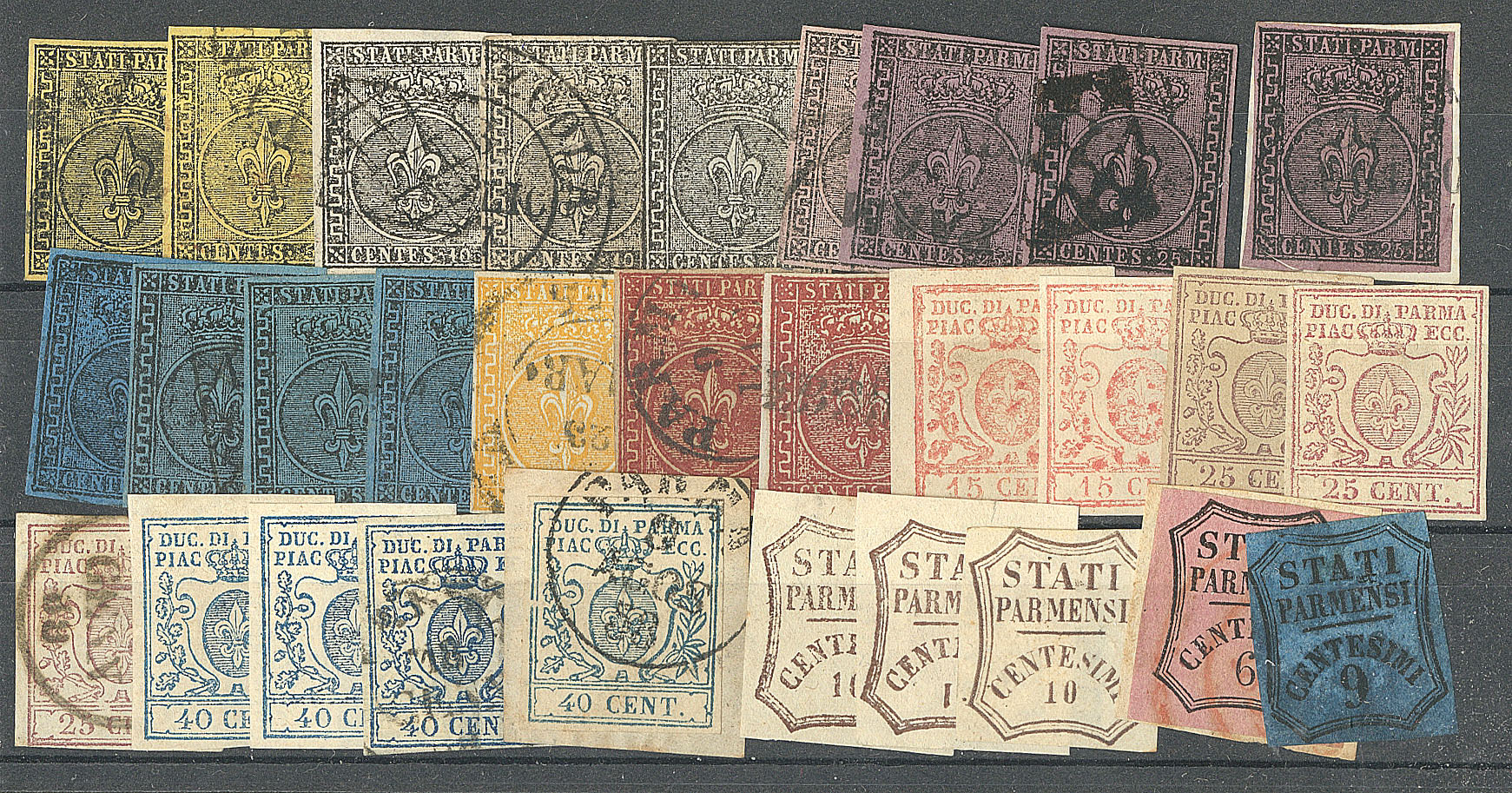 | 2494 | PARME.Parme. Collection 1852-1869, dont N°6 et 9 ex * ou (*). - TB, B ou pd | 30 | - | 300€ | vendu 611€ |