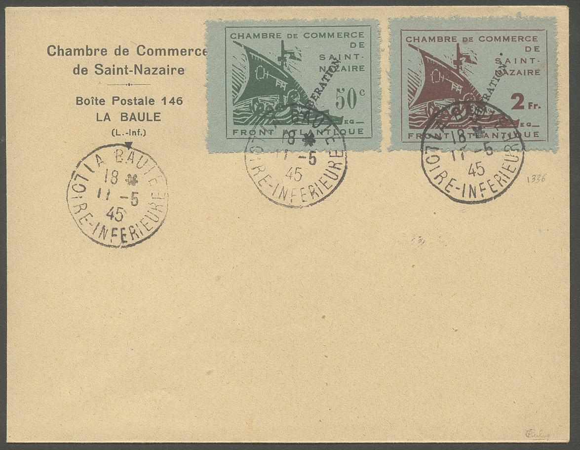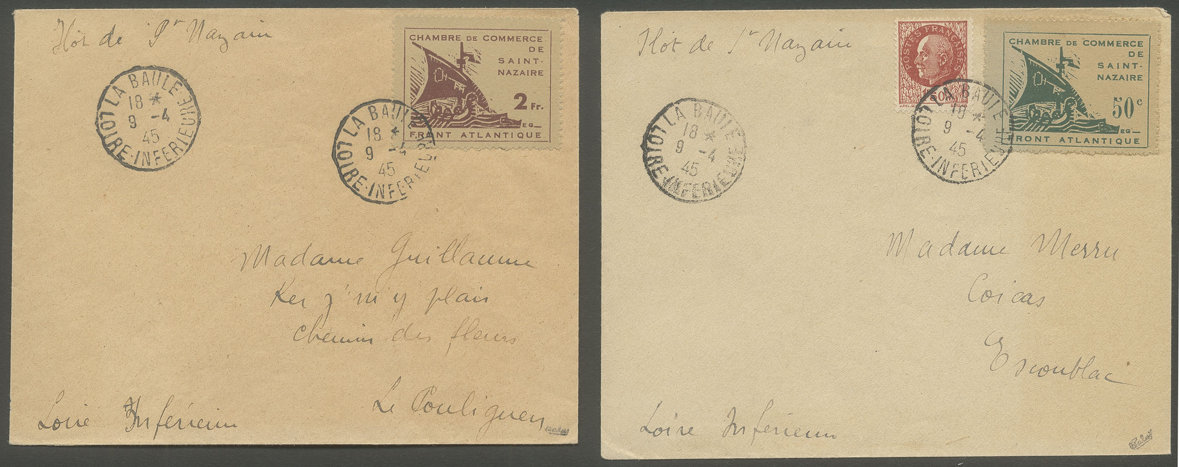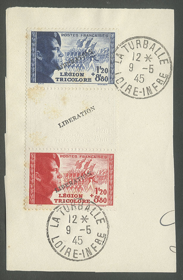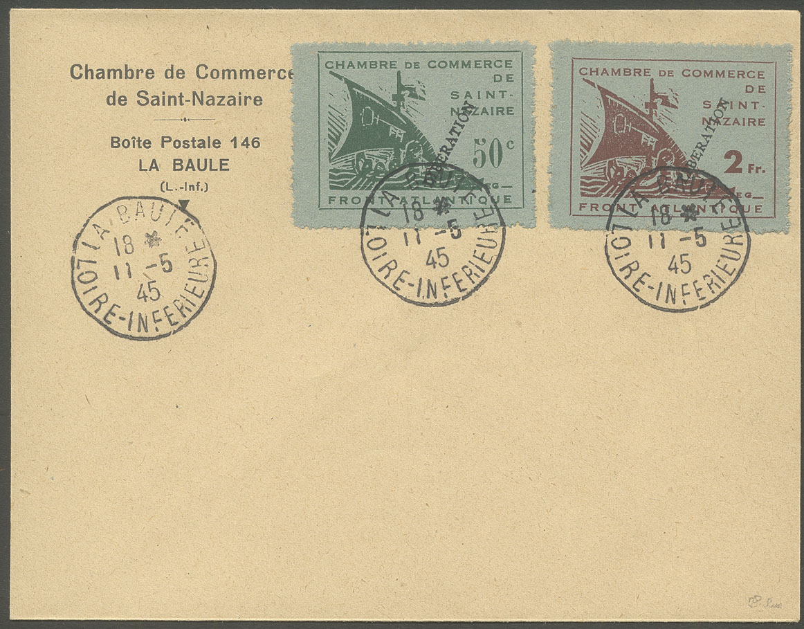 1810 | — Nos 8 + 9, obl cad La Baule 11.5.45 sur �7 non voyagé. - TB | —€ | 100 € | - | ||