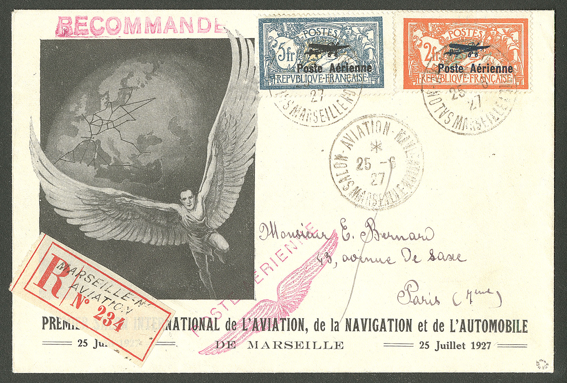 951 | POSTE AERIENNE. Lettre.Nos 1 + 2, obl 25.627 sur enveloppe recommandée illustrée. - TB (cote Yvert) | 2 | 500€ | 100€ | vendu 100€ | |