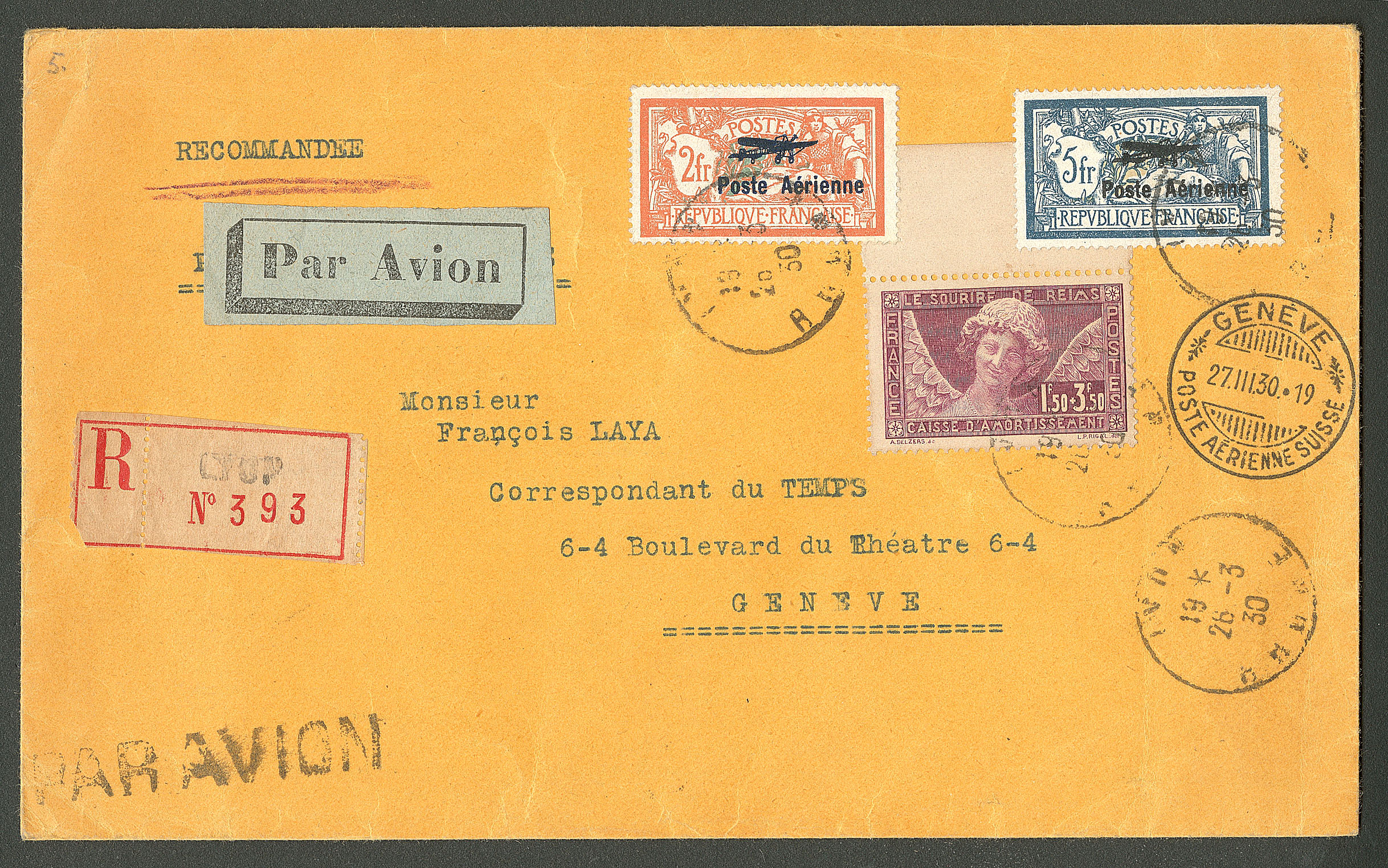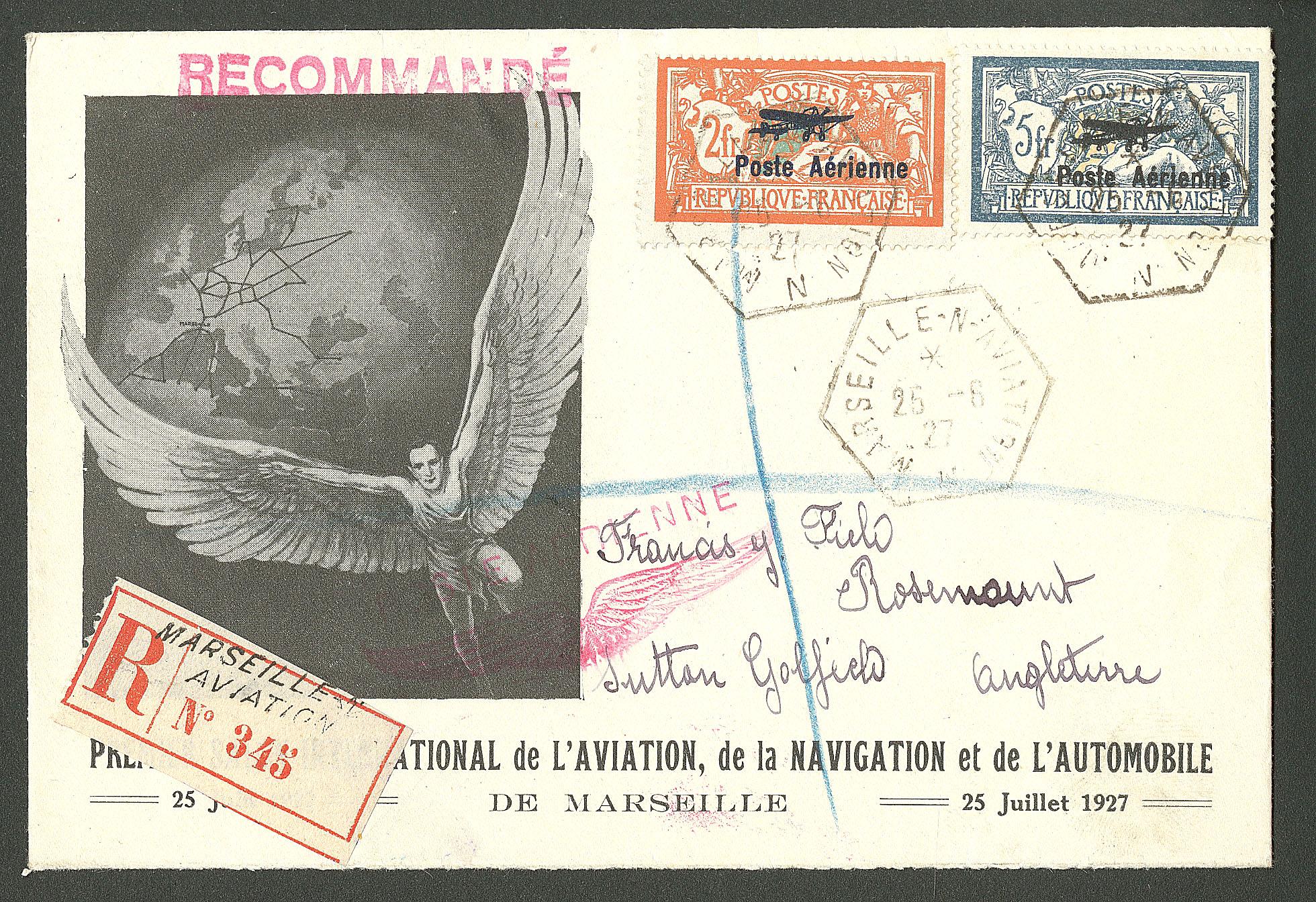 952 | POSTE AERIENNE. Lettre.Nos 1 + 2, obl 25.6.27 sur enveloppe recommandée illustrée pour l'Angleterre. - TB (cote Yvert) | 2 | 500€ | 100€ | vendu 100€ | |
