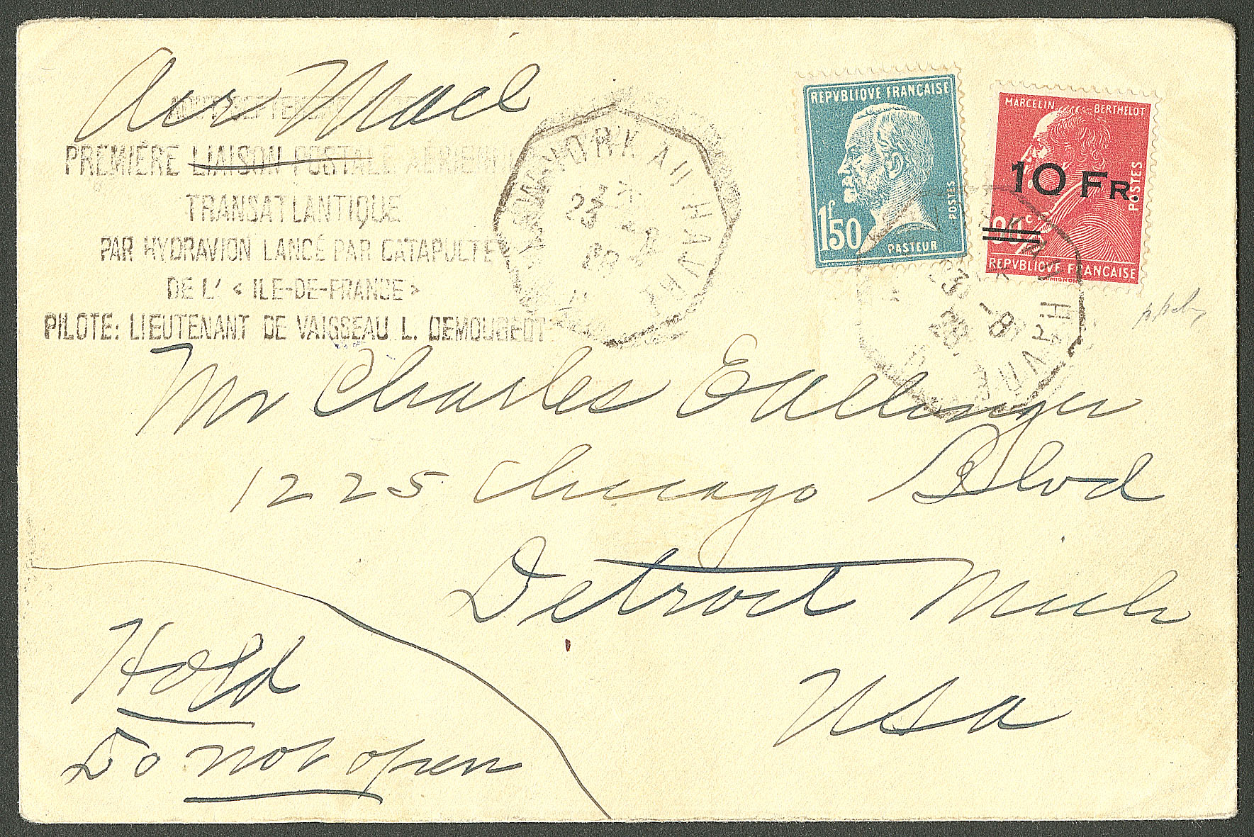 961 | POSTE AERIENNE. Lettre.Ile de France. Nos 3 + Poste 181, obl 23.8.28 sur enveloppe avec griffe spéciale. - TB. - R (cote Yvert) | 2 | 3500€ | 900€ | vendu 900€ | |