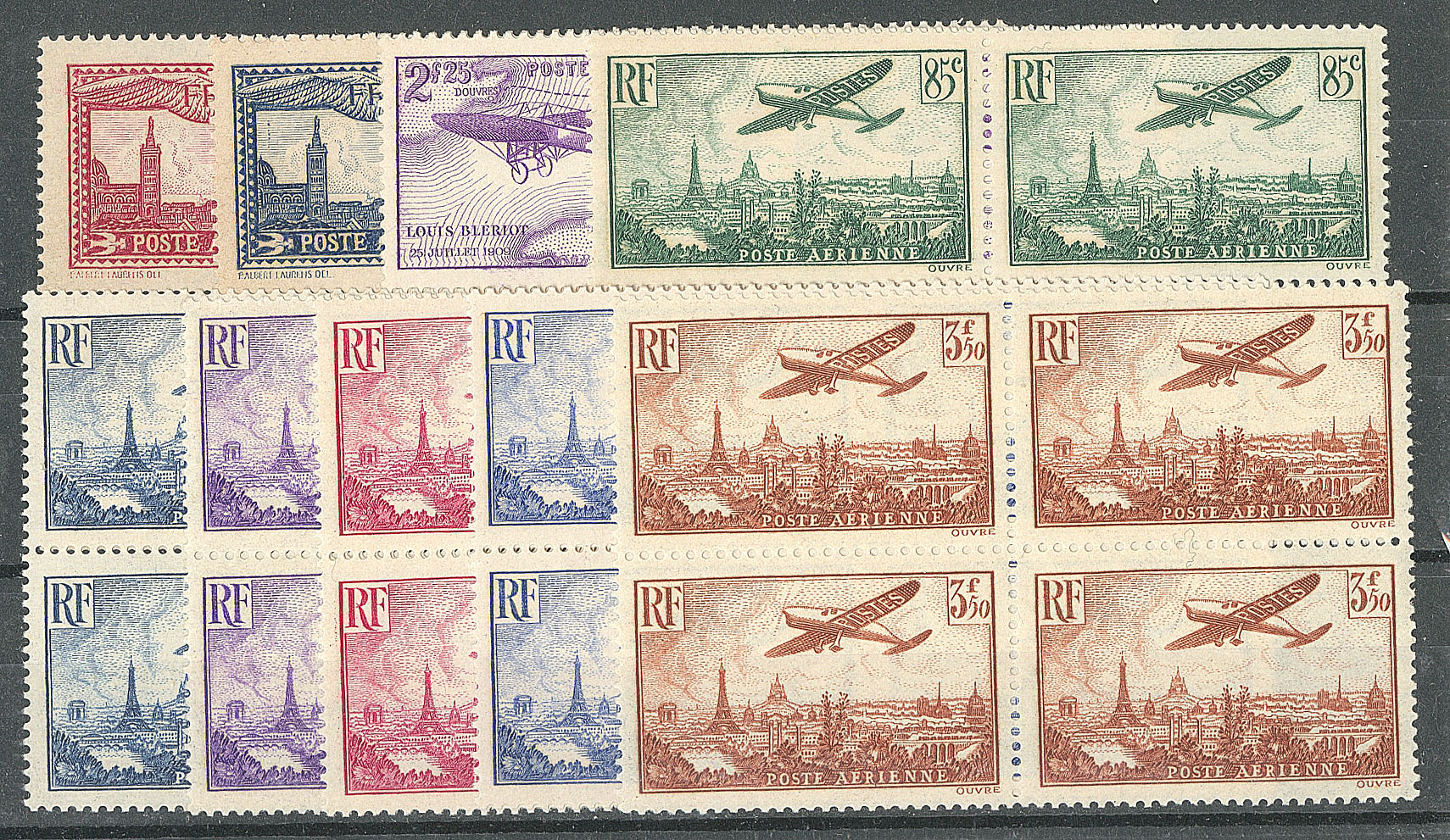 | ** | 965 | POSTE AERIENNE. ** Nos 5 à 13, tous en bloc de quatre, le N°10 * et le 11 un ex *. - TB (cote Yvert) | 36 | 1712€ | 180€ | vendu 191€ | |
