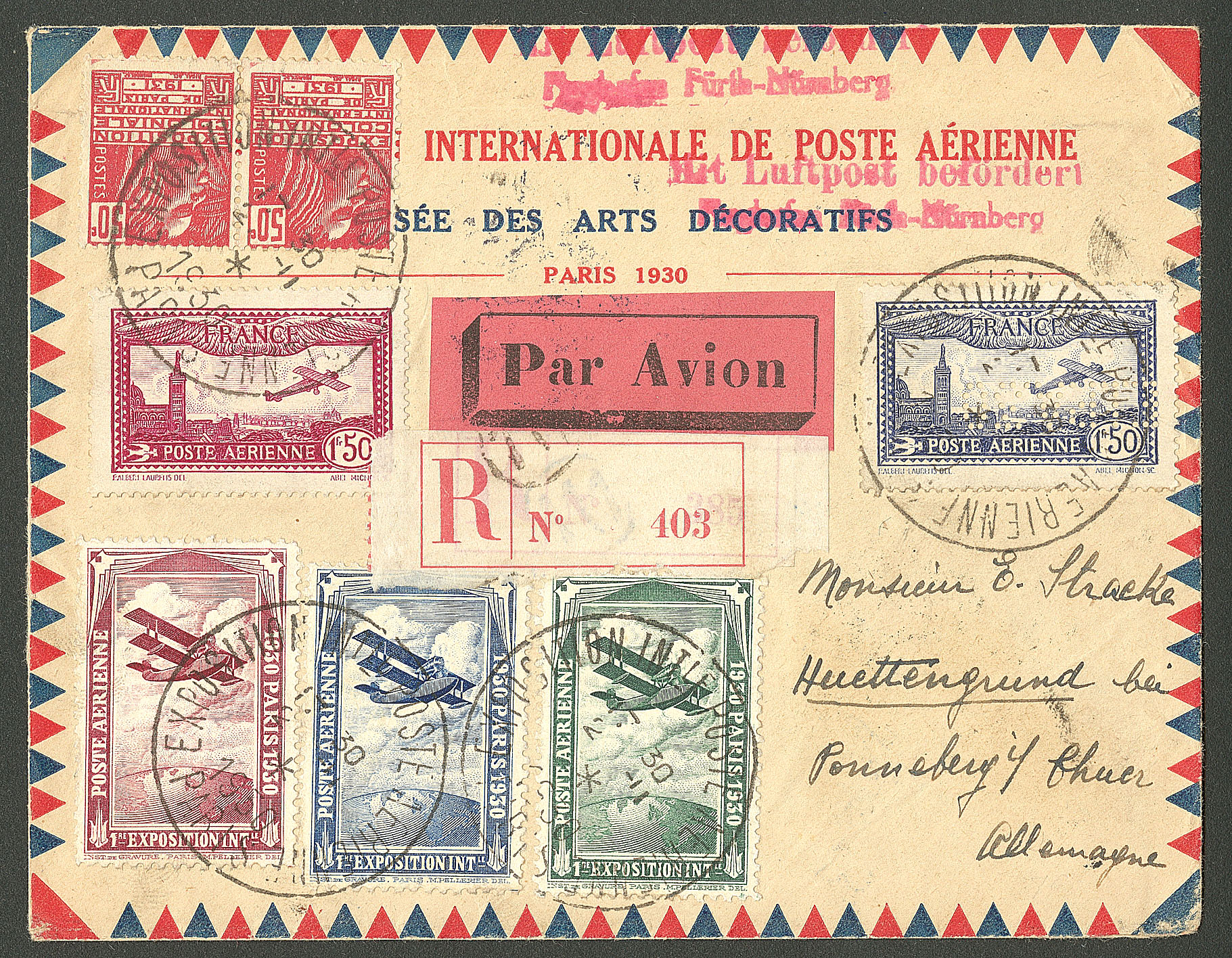 966 | POSTE AERIENNE. Lettre.Nos 5 + 6c + Poste 272 paire + 3 VS Expo Paris 1930, sur enveloppe spéciale recommandée pour l'Allemagne. - TB (cote Yvert) | 7 | - | 100€ | vendu 114€ | |