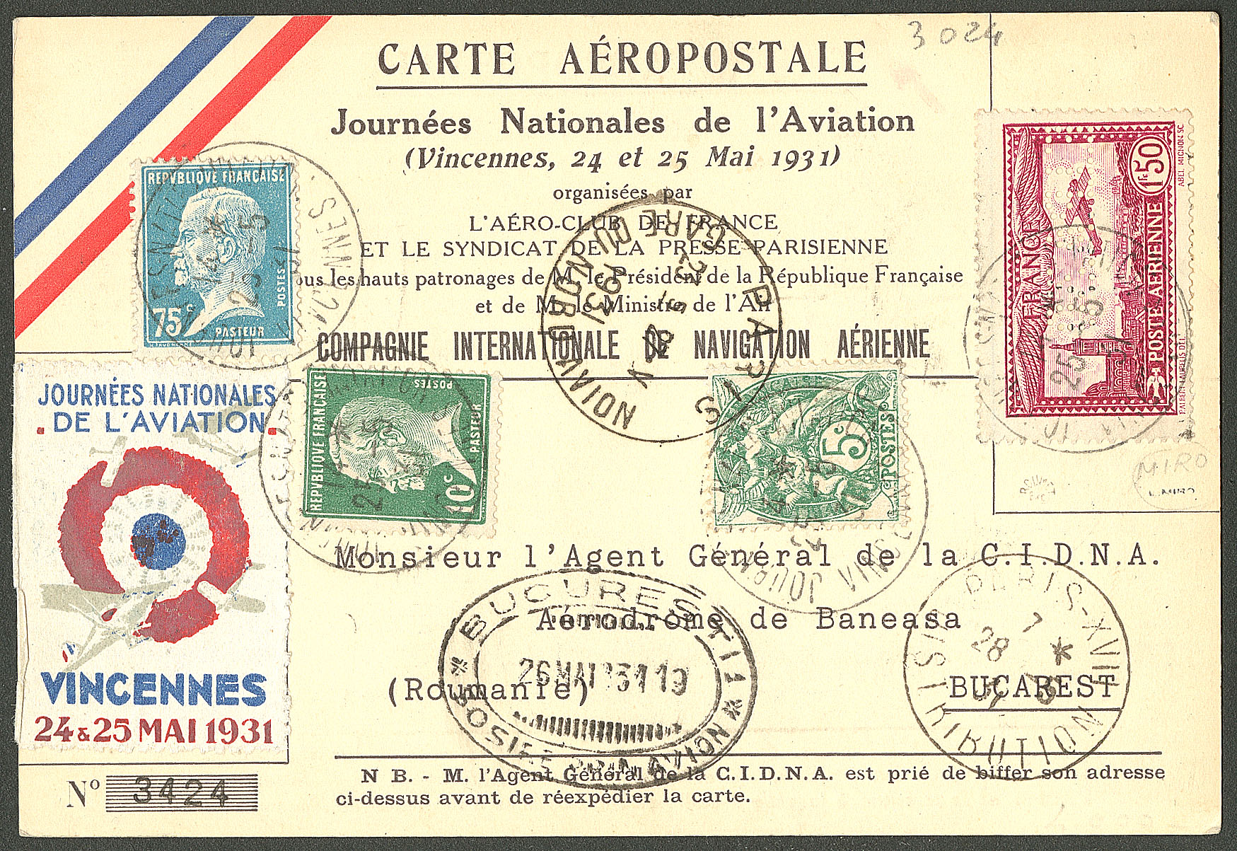 974 | POSTE AERIENNE. Lettre.EIPA 30. No 6d + Poste 111 + 170 + 177 + VS + Roumanie PA 7 + 9 + 10, sur CTS N°3424 pour Bucarest. - TB. - R (cote Yvert) | 8 | 5350€ | 1200€ | vendu 1200€ | |