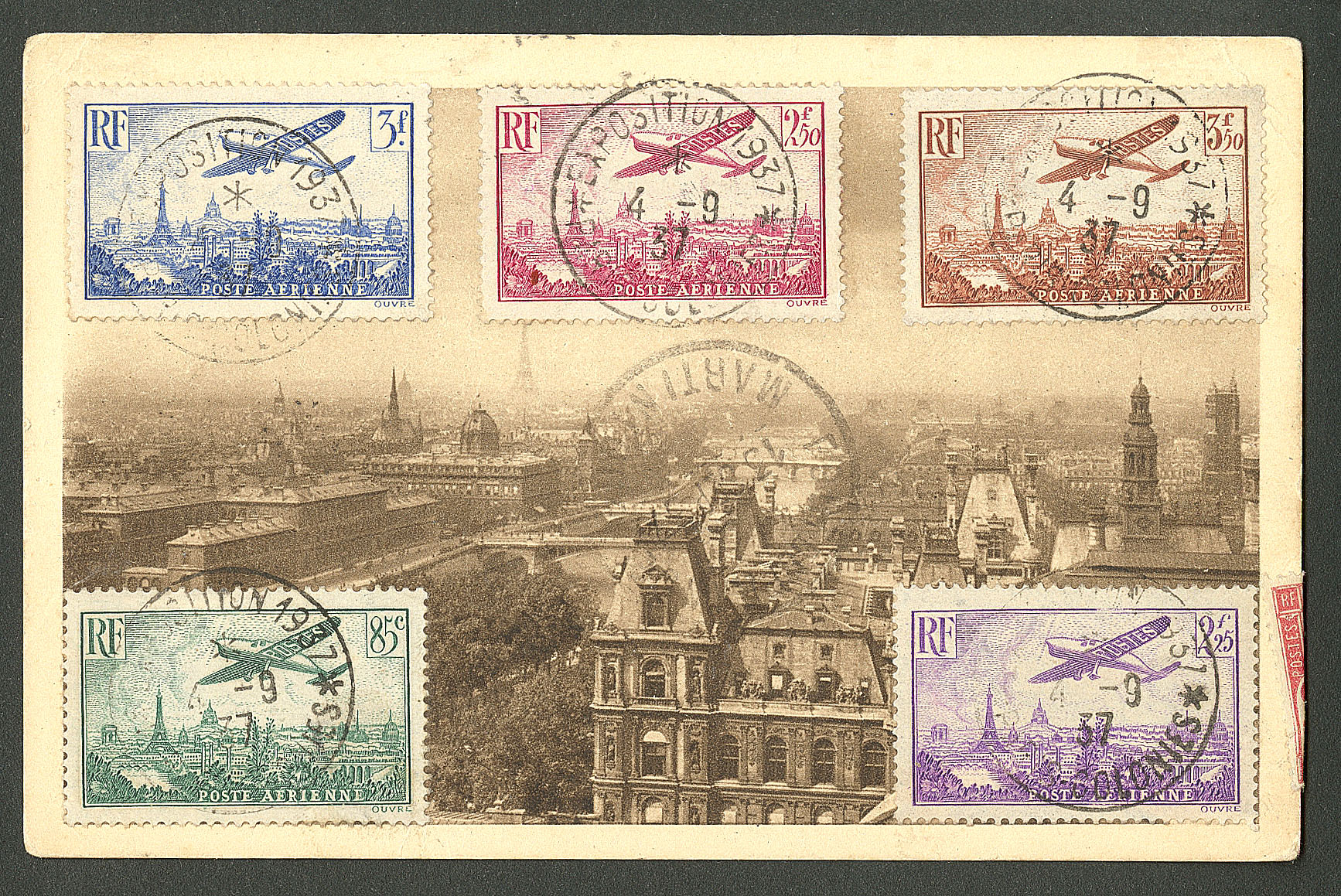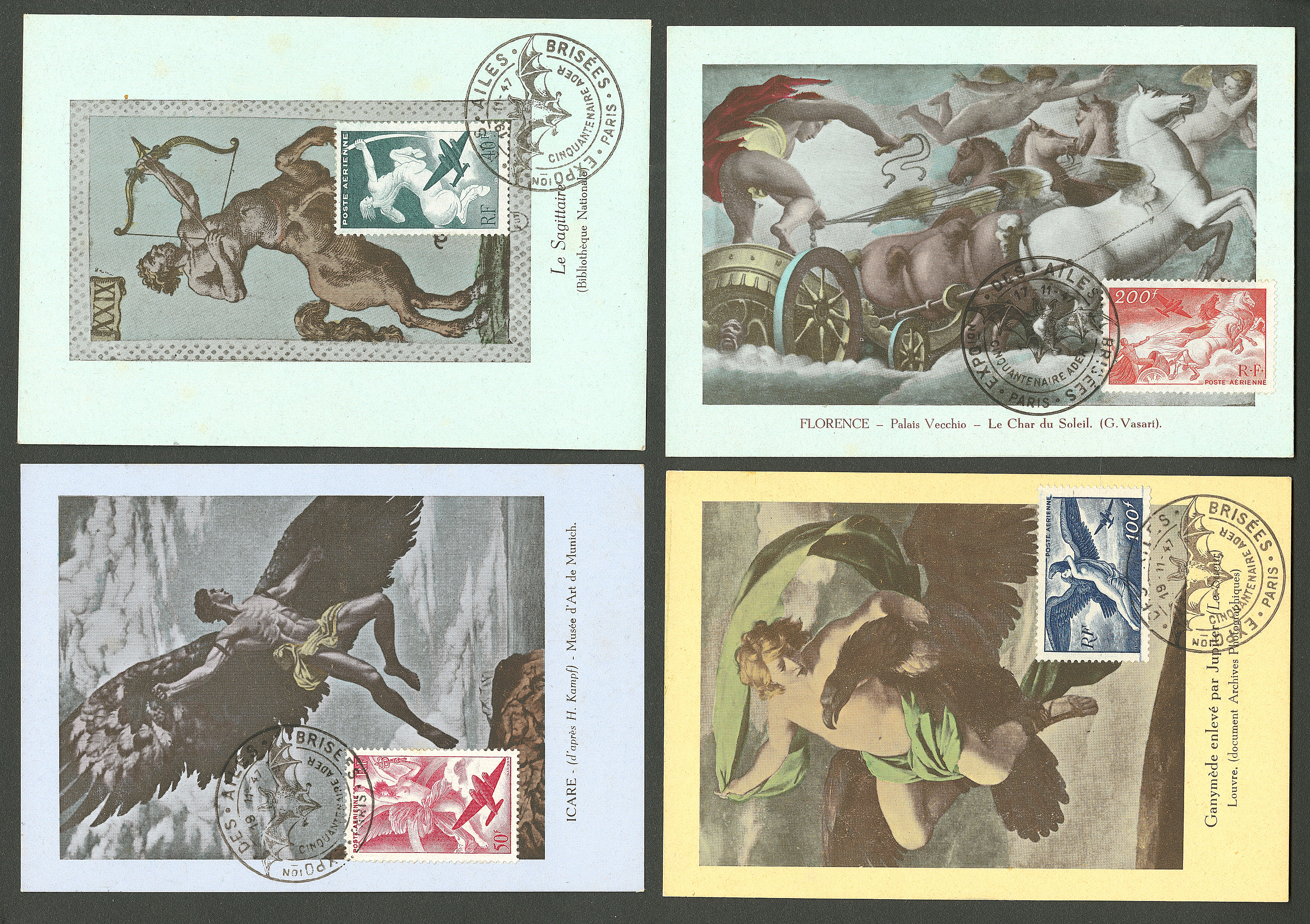 987 | POSTE AERIENNE. Lettre.Nos 16 à 19 sur 4 cartes maximum numérotées, obl CS 19.11.47 Exposition des Ailes Brisées. - TB | 4 | - | 50€ | vendu 106€ | |