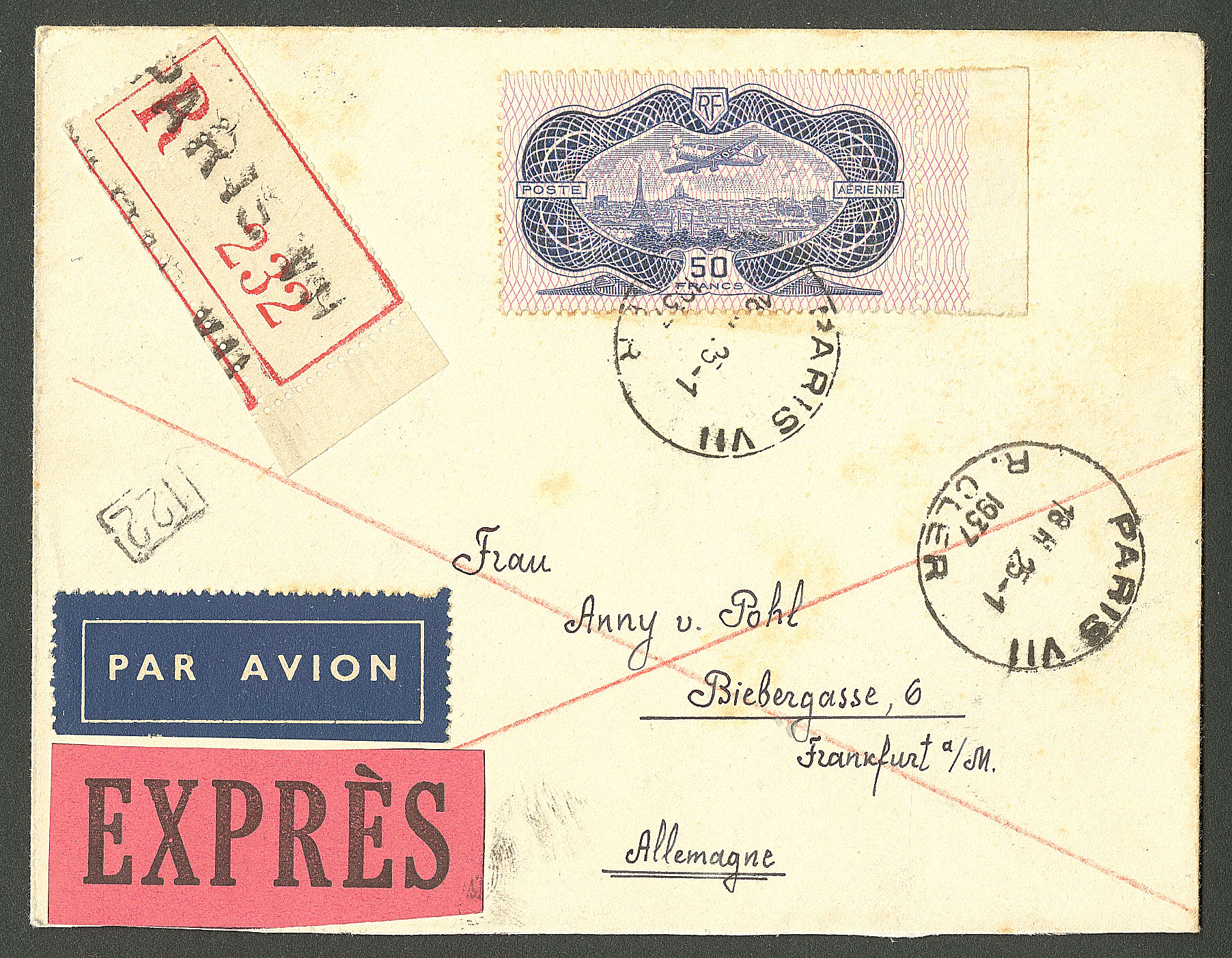 984 | POSTE AERIENNE. Lettre.Burelé. No 15 bdf, sur enveloppe recommandée de Paris 25.1.37 pour l'Allemagne, des rousseurs sinon TB (cote Yvert) | 1 | 1250€ | 150€ | vendu 158€ | |