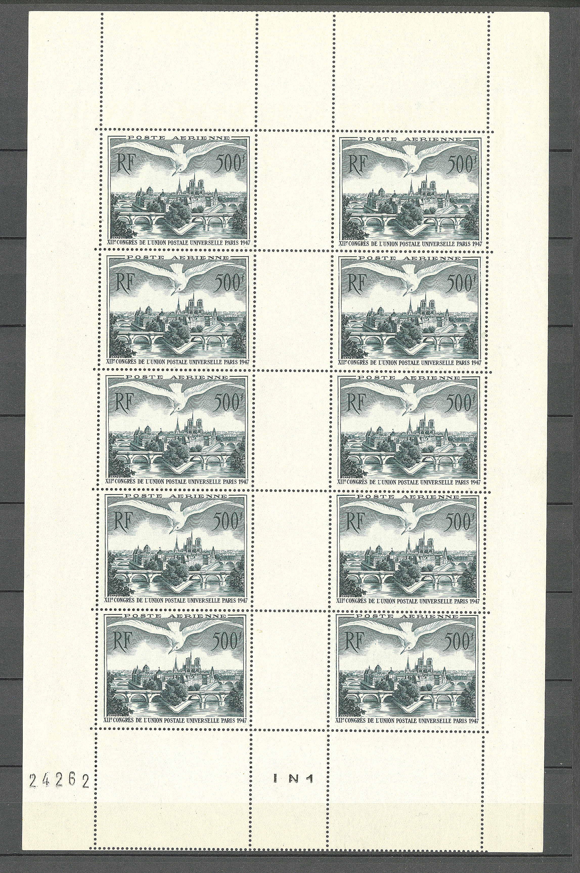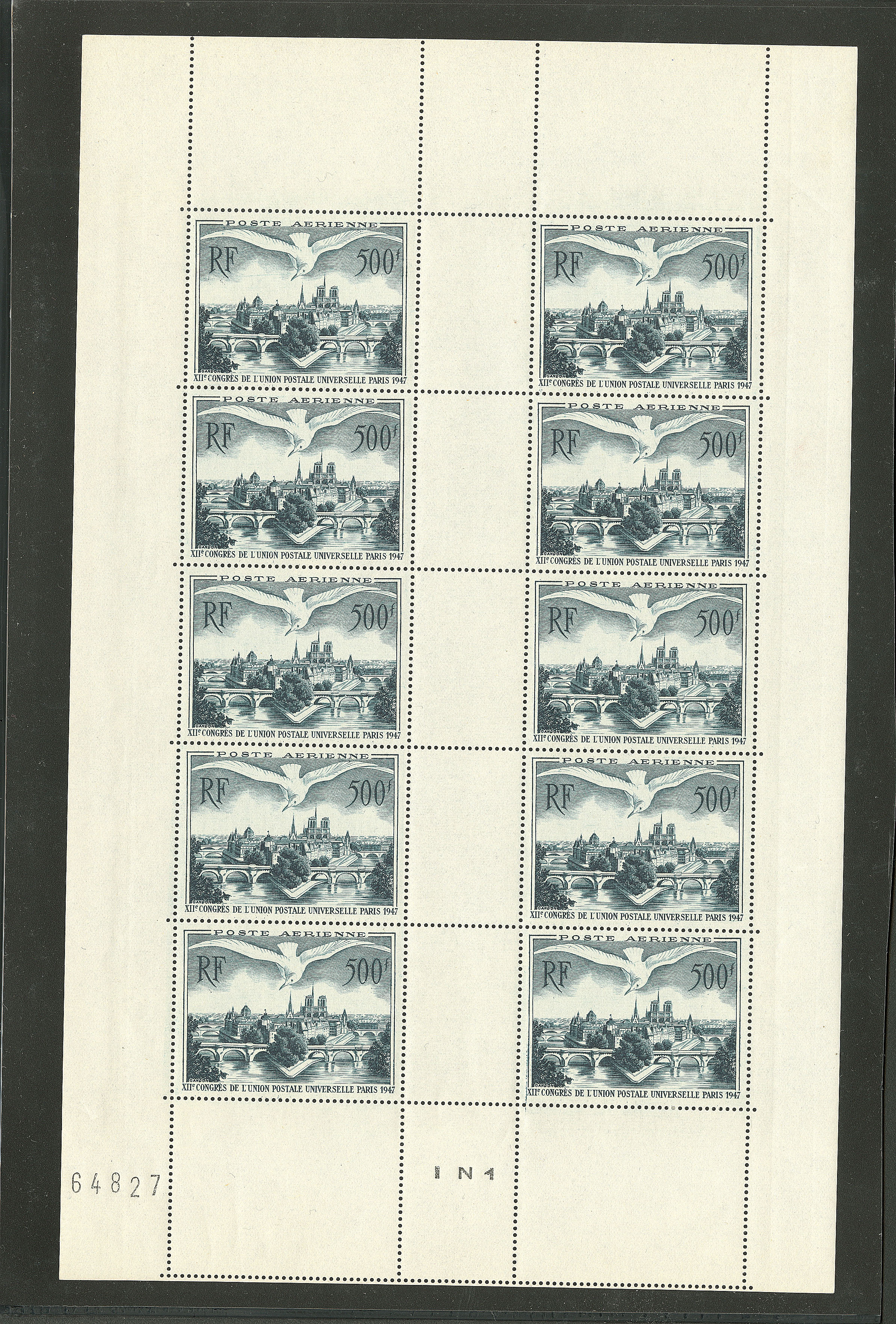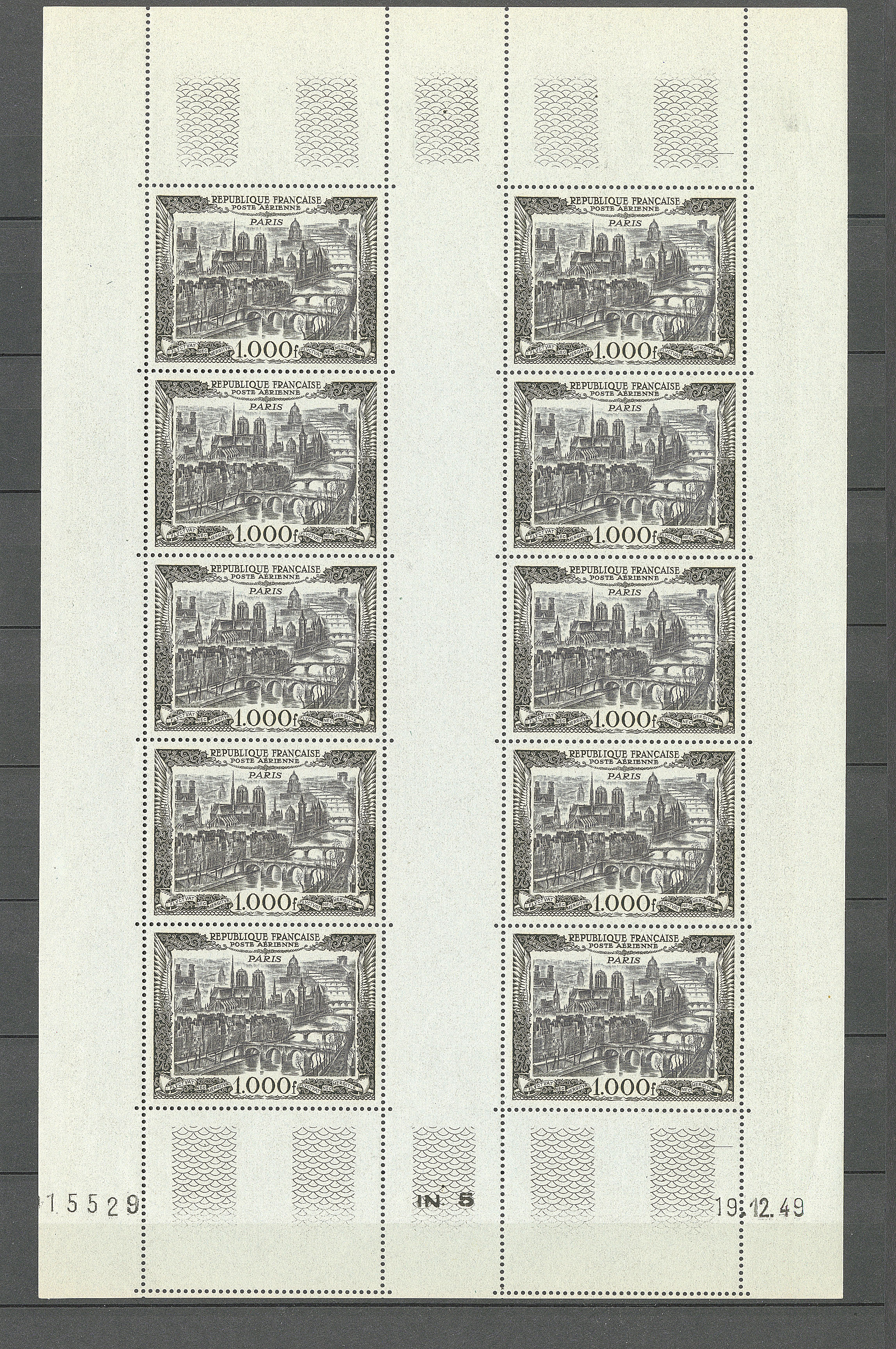 | ** | 989 | POSTE AERIENNE. ** No F20, feuille de dix. - TB (cote Yvert) | 10 | 650€ | 120€ | - | |