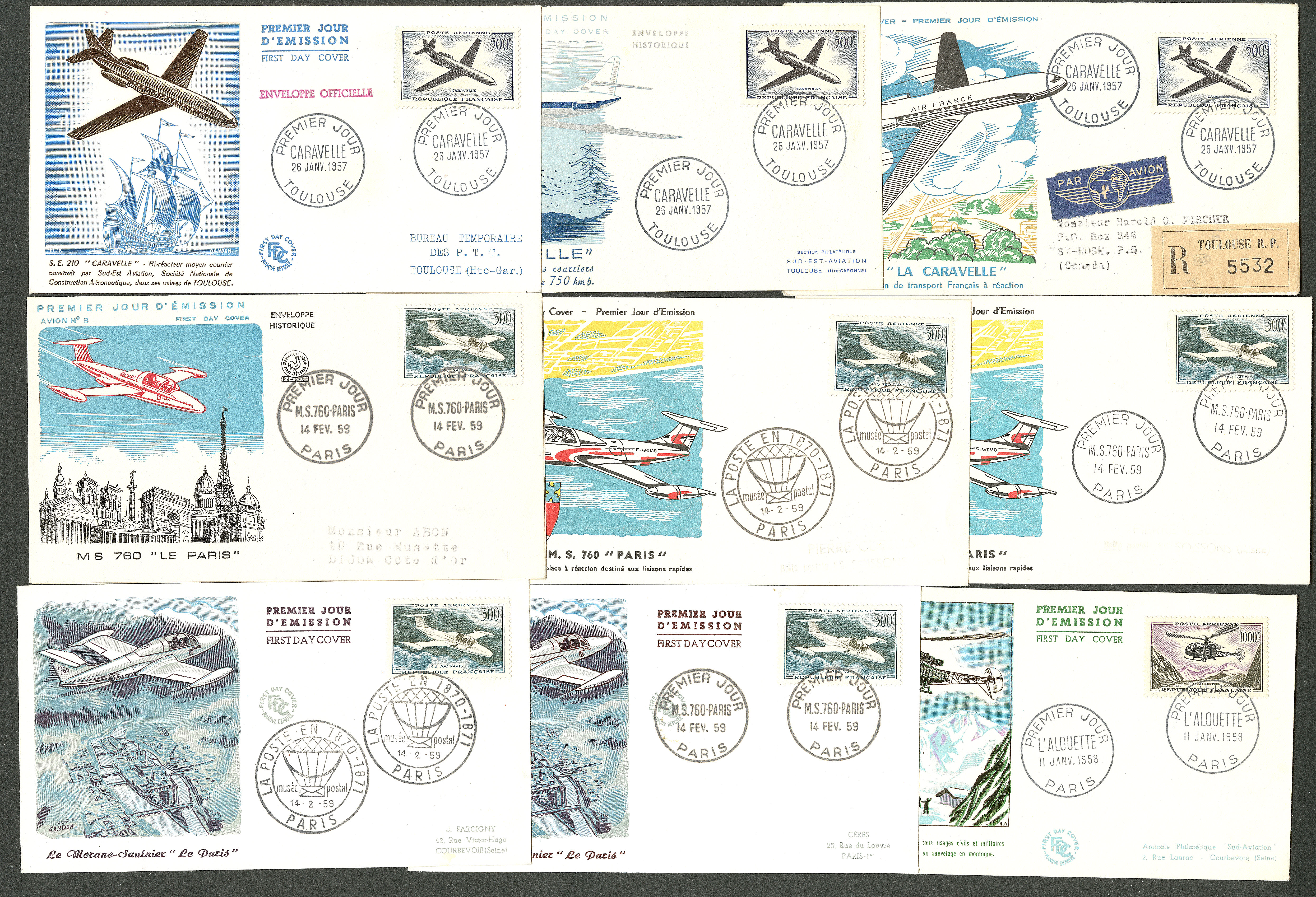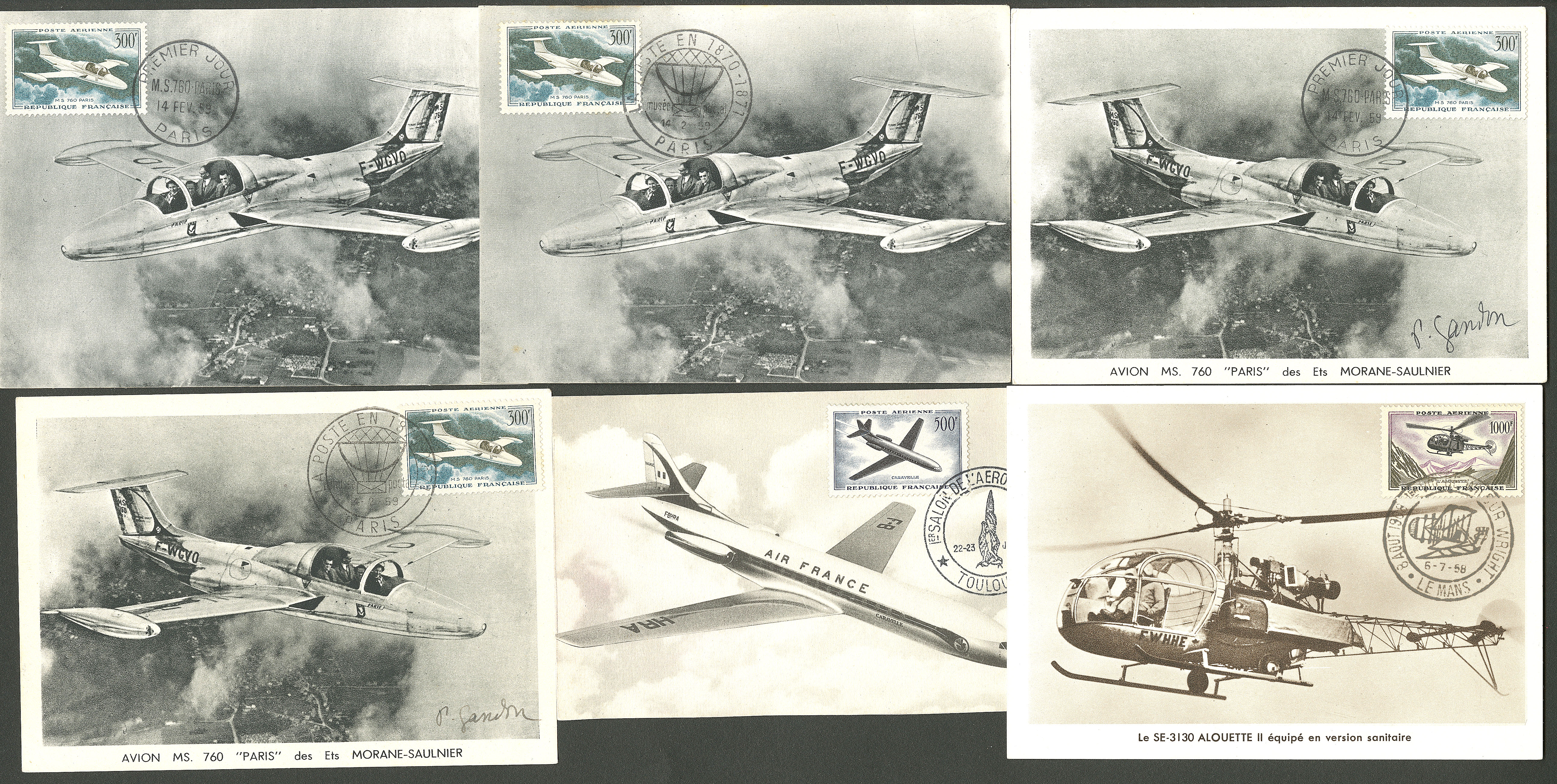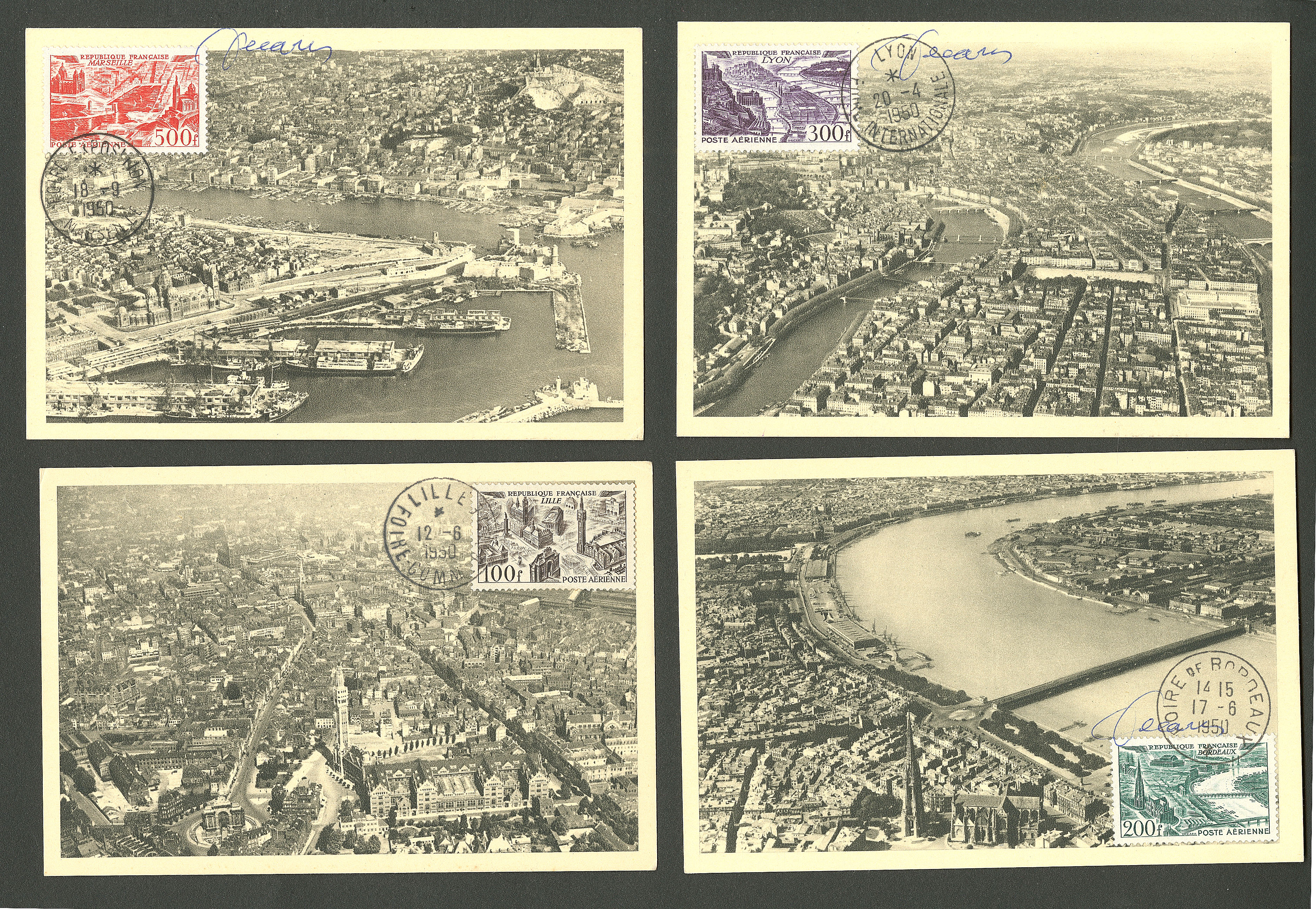 994 | POSTE AERIENNE. Lettre.Nos 35 à 41 en 10 enveloppes 1er Jour et 12 cartes maximum dont 2 signées Gandon, vues, illustrations et cachets divers. - TB | 22 | - | 100€ | vendu 176€ | |