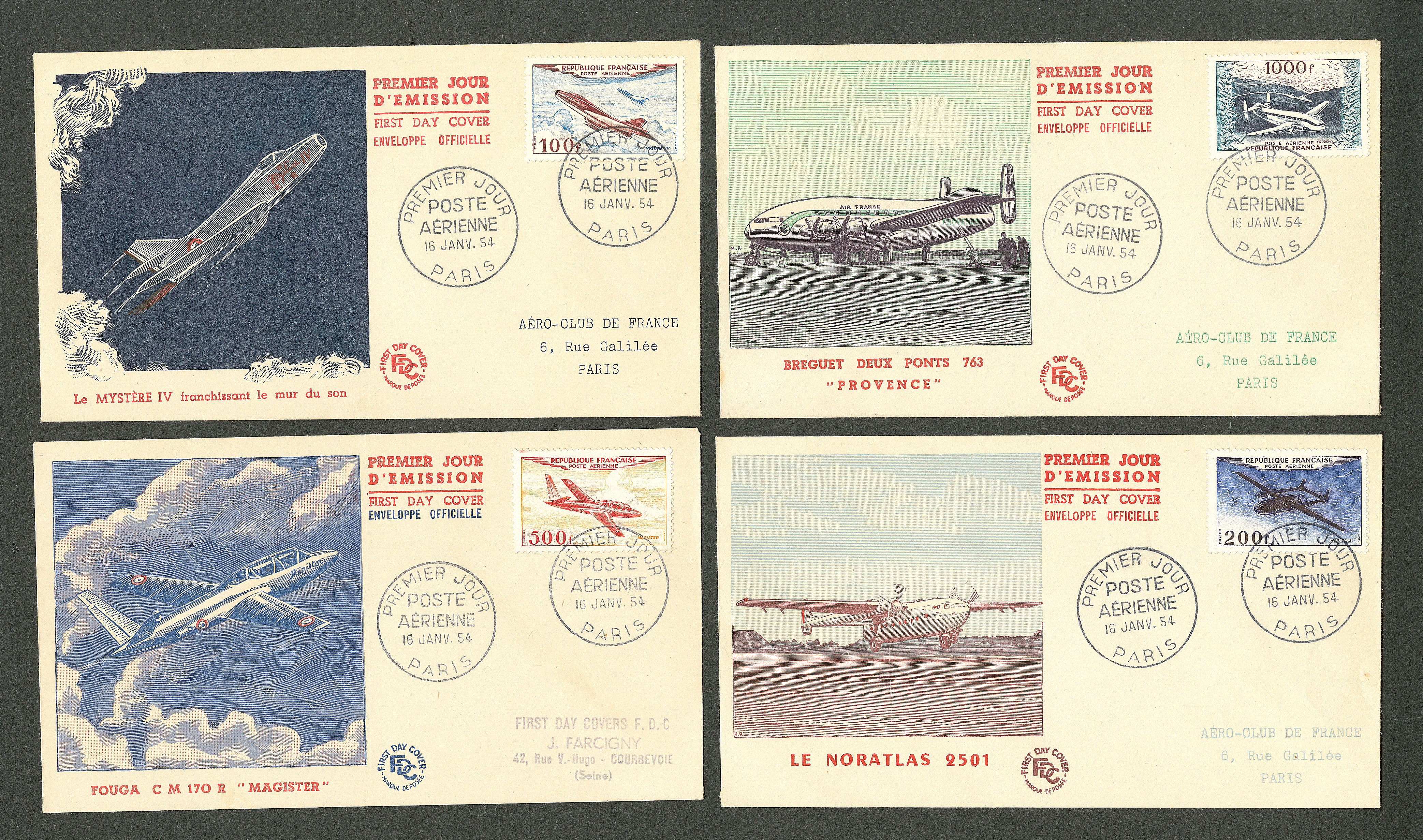 993 | POSTE AERIENNE. Lettre.Nos 30 à 33, sur 4 enveloppes 1er jour obl 16.1.54. - TB (cote Yvert) | 4 | 1200€ | 180€ | vendu 180€ | |