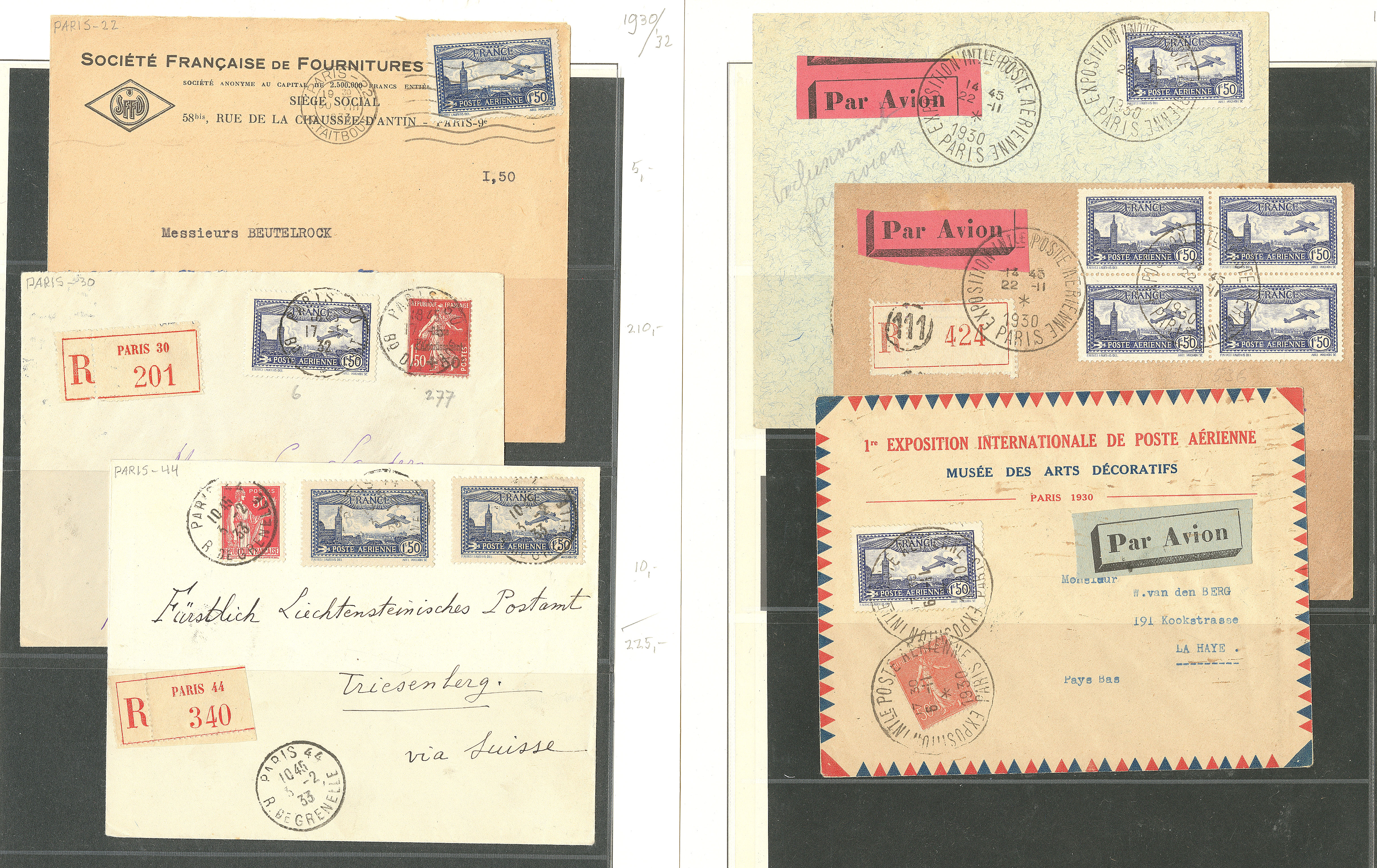 995 | POSTE AERIENNE. Lettre.Collection. 1910-1950, 103 CP et enveloppes dont meetings, fêtes et expos aériennes diverses, CS, VS, etc., en 2 albums. - TB | - | 500€ | vendu 527€ | ||