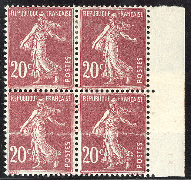 | ** | 576 | XXe SIECLE. ** No 131a, brun lilas foncé, bloc de quatre cdf. - TB | 4 | 880€ | 180€ | - | |