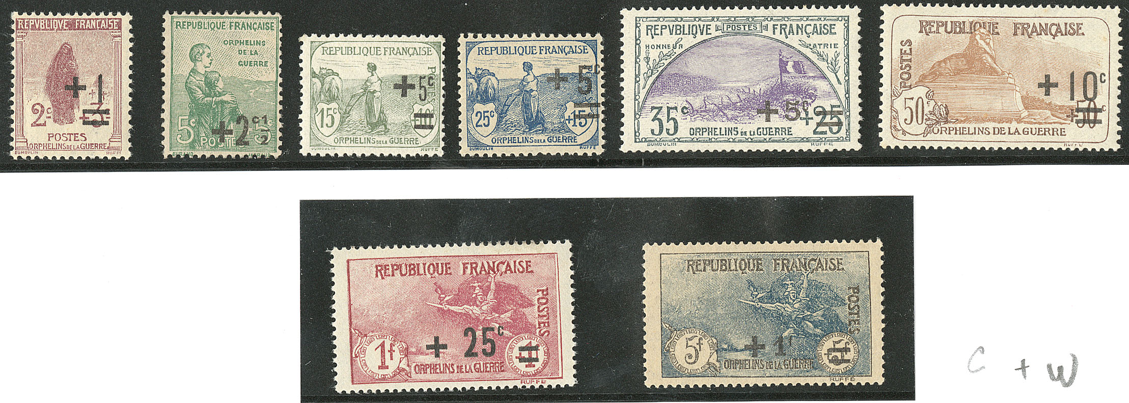 | (*) | 592 | XXe SIECLE. (*) 1e Orphelins. Nos 148 à 155, le 153 petites taches au recto, les 154 et 155 bien centrés. - TB | 8 | - | 500€ | vendu 551€ | |