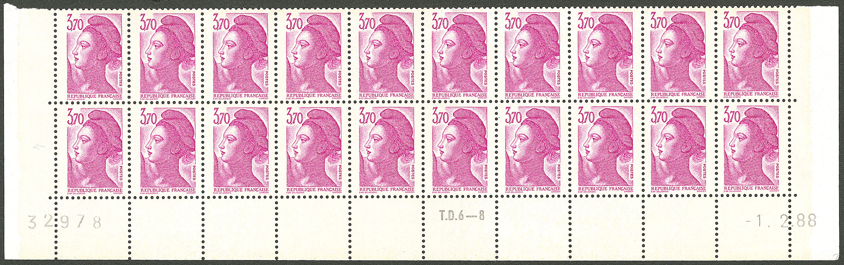 | ** | 1021 | XXe SIECLE ** Liberté. Sans phospho. No 2486b, bas de feuille cd 1.2.88. - TB. - R | 20 | 3700€ | 500€ | - | |