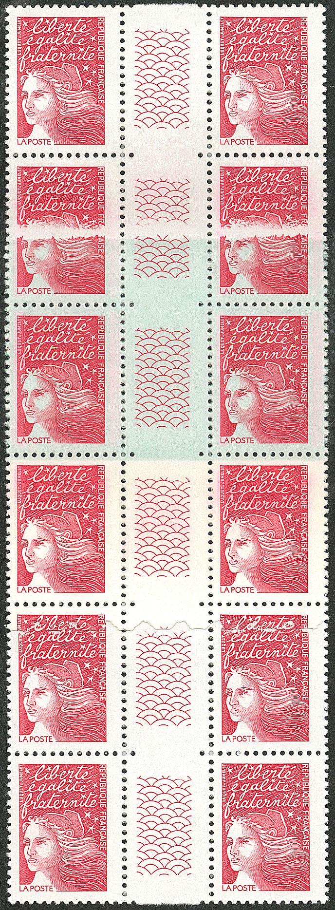 | ** | 1034 | XXe SIECLE ** Jaune et vert absents, piquage à cheval. No 3069a, bande de six bdf, superbe. - R (N°et cote SM | 6 | 8400€ | 1200€ | - | |
