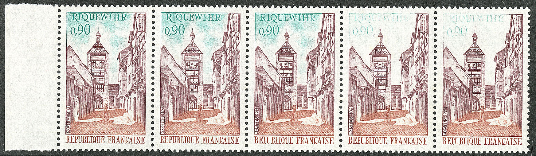 | ** | 993 | XXe SIECLE ** Riquewihr, fond vert absent. No 1685b, deux ex dans une bande de cinq bdf. - TB | 5 | 960€ | 150€ | vendu 291€ | |