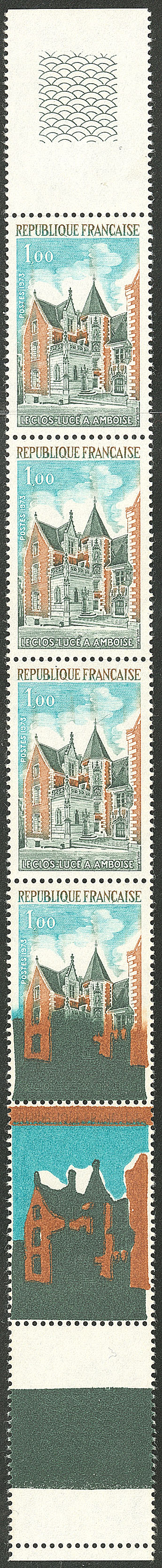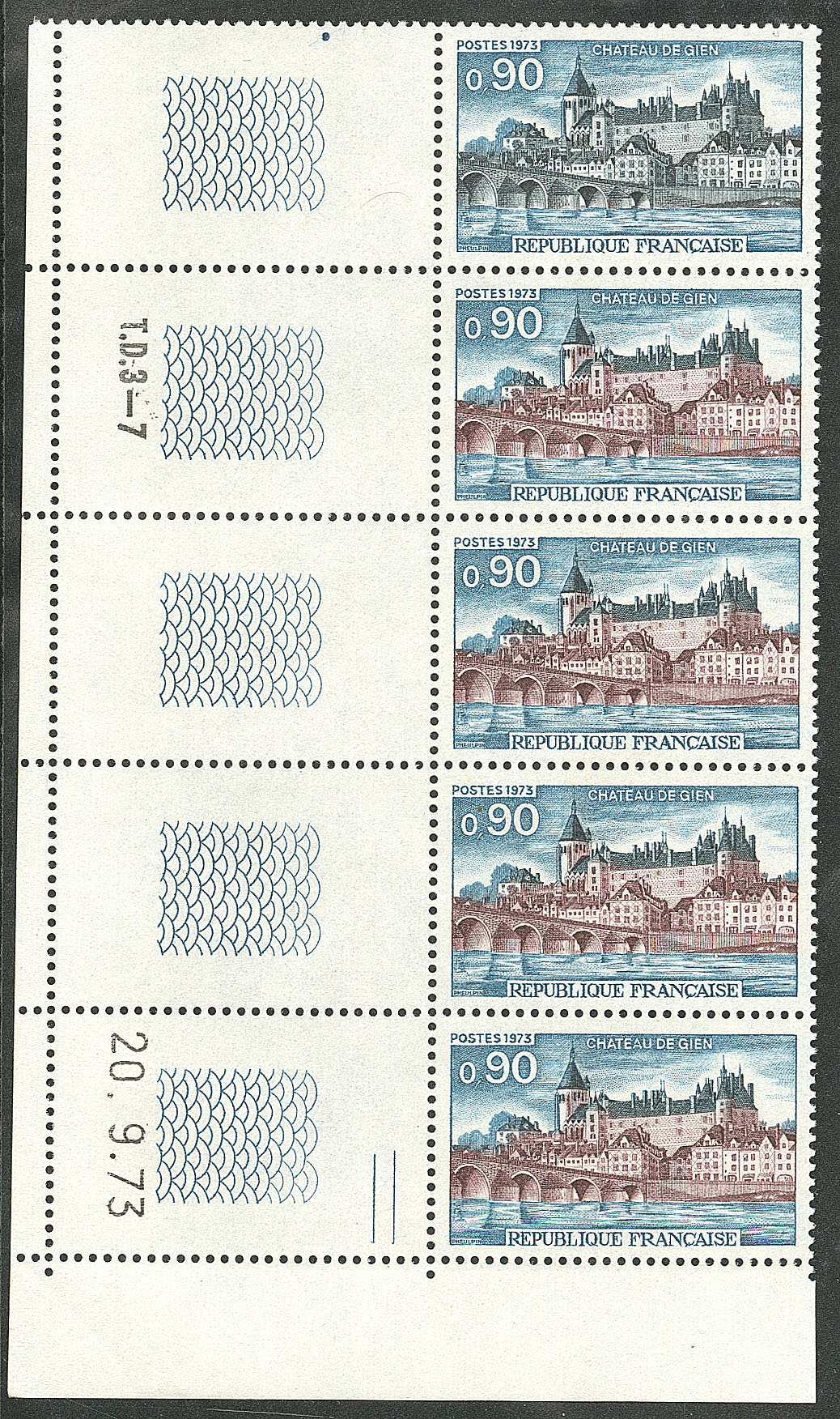 | ** | 996 | XXe SIECLE ** Château de Gien, gris-bleu. No 1758b, dans une bande de cinq verticale cdf datée 20.9.73. - TB. - R (N°et cote SM | 5 | 5500€ | 900€ | vendu 1575€ | |