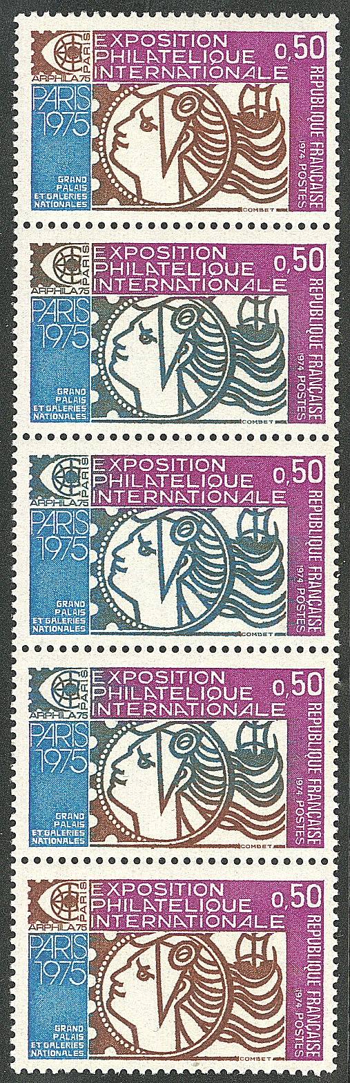 | ** | 998 | XXe SIECLE ** Arphila 75, visage bleu-vert. No 1783, deux ex tenant à un ex visage bleu-vert/brun, tenant à deux ordinaires et formant bande de cinq verticale. - TB. - R | 5 | - | 500€ | vendu 754€ | |