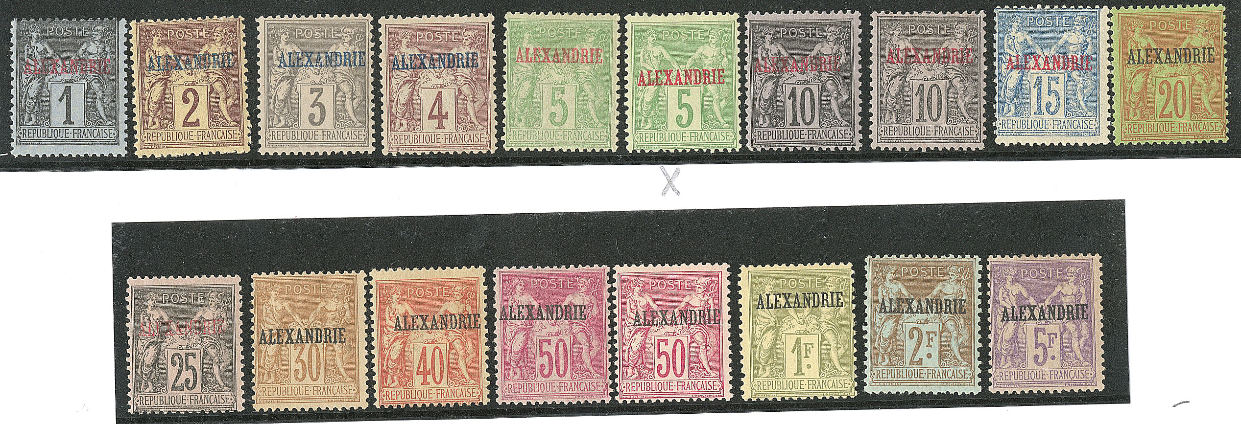 | * | 1505 | ALEXANDRIE. * Nos 1 à 18, sauf 3A et 11A. - TB (cote Yvert) | 18 | 1060€ | 250€ | vendu 273€ | |