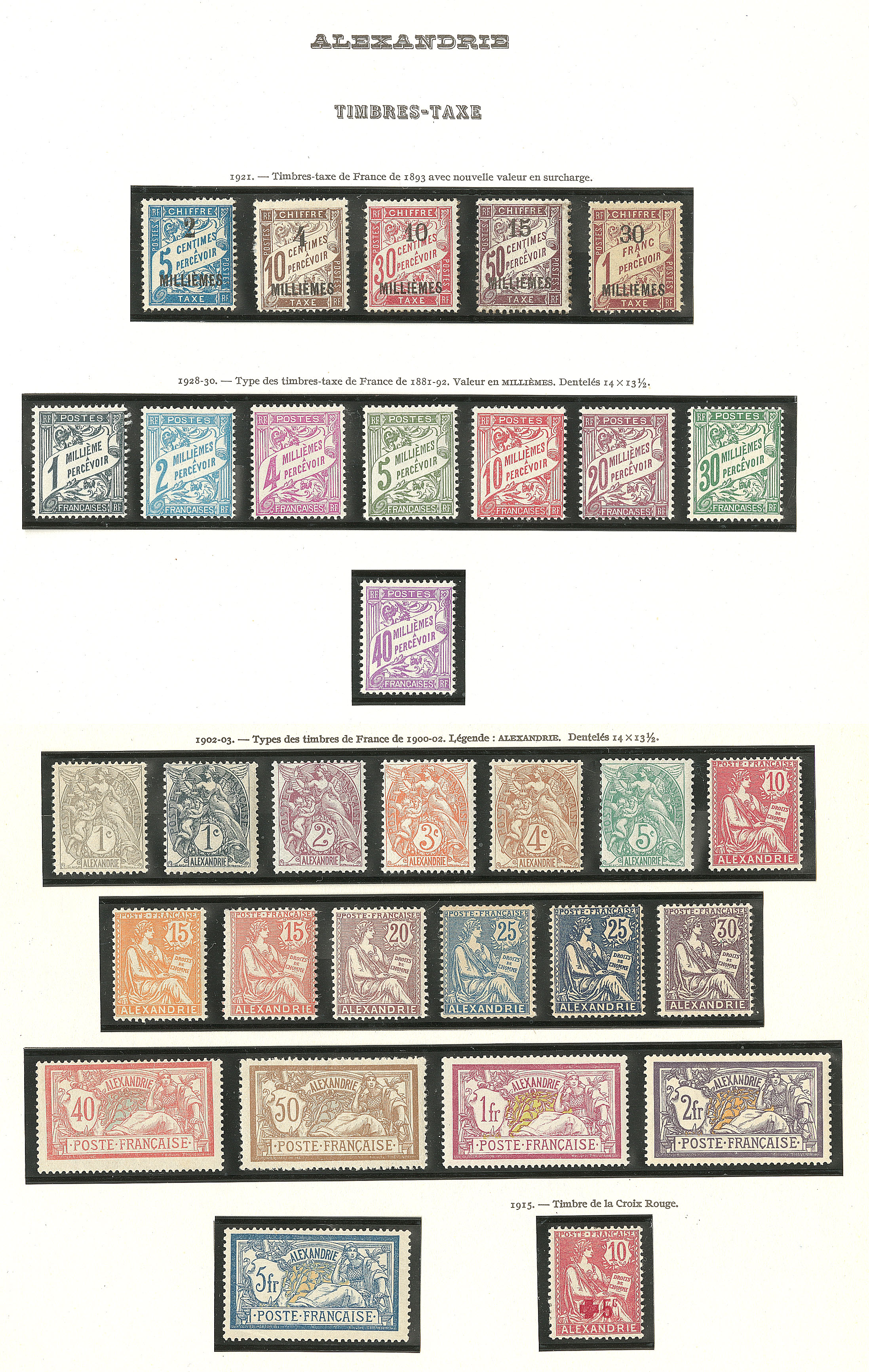 | * | 1509 | ALEXANDRIE. * Collection. 1902-1930 (Poste, Taxe), complète sauf 50 et 59. - TB ou B (cote Yvert) | 83 | 1680€ | 200€ | vendu 378€ |