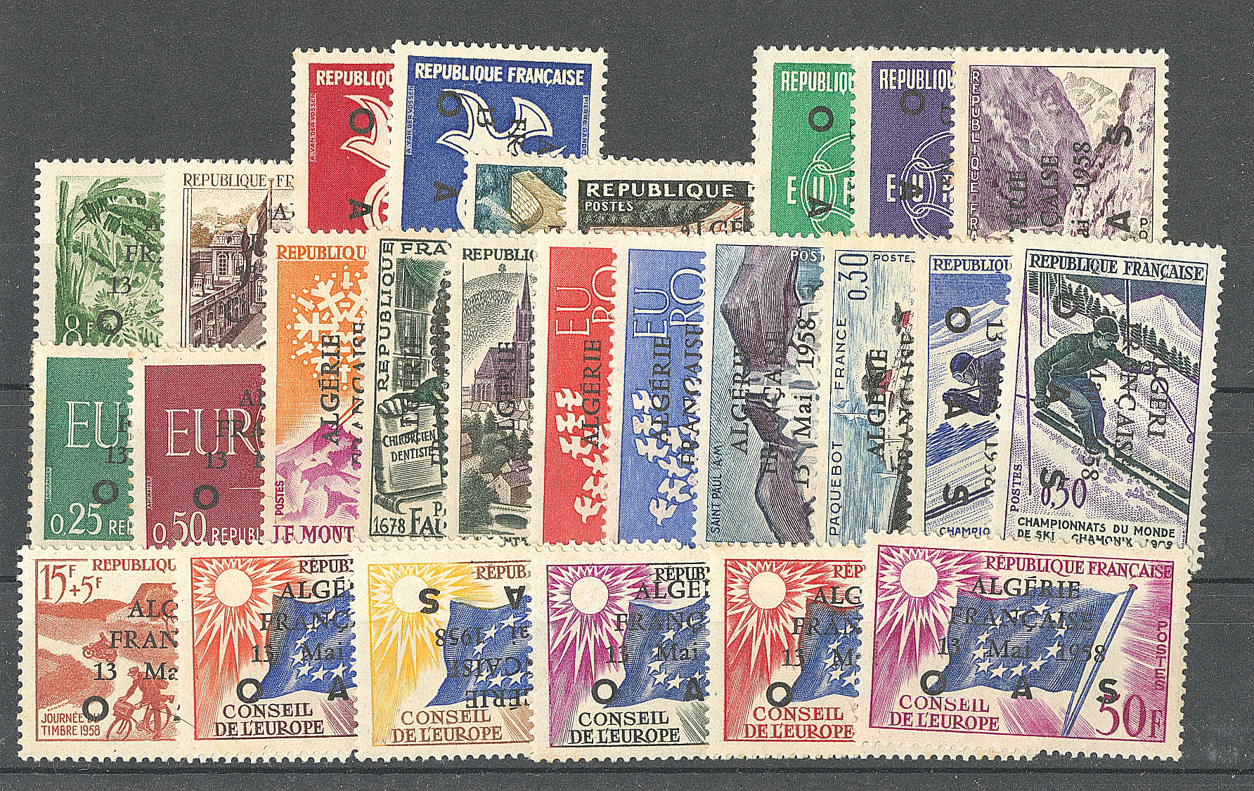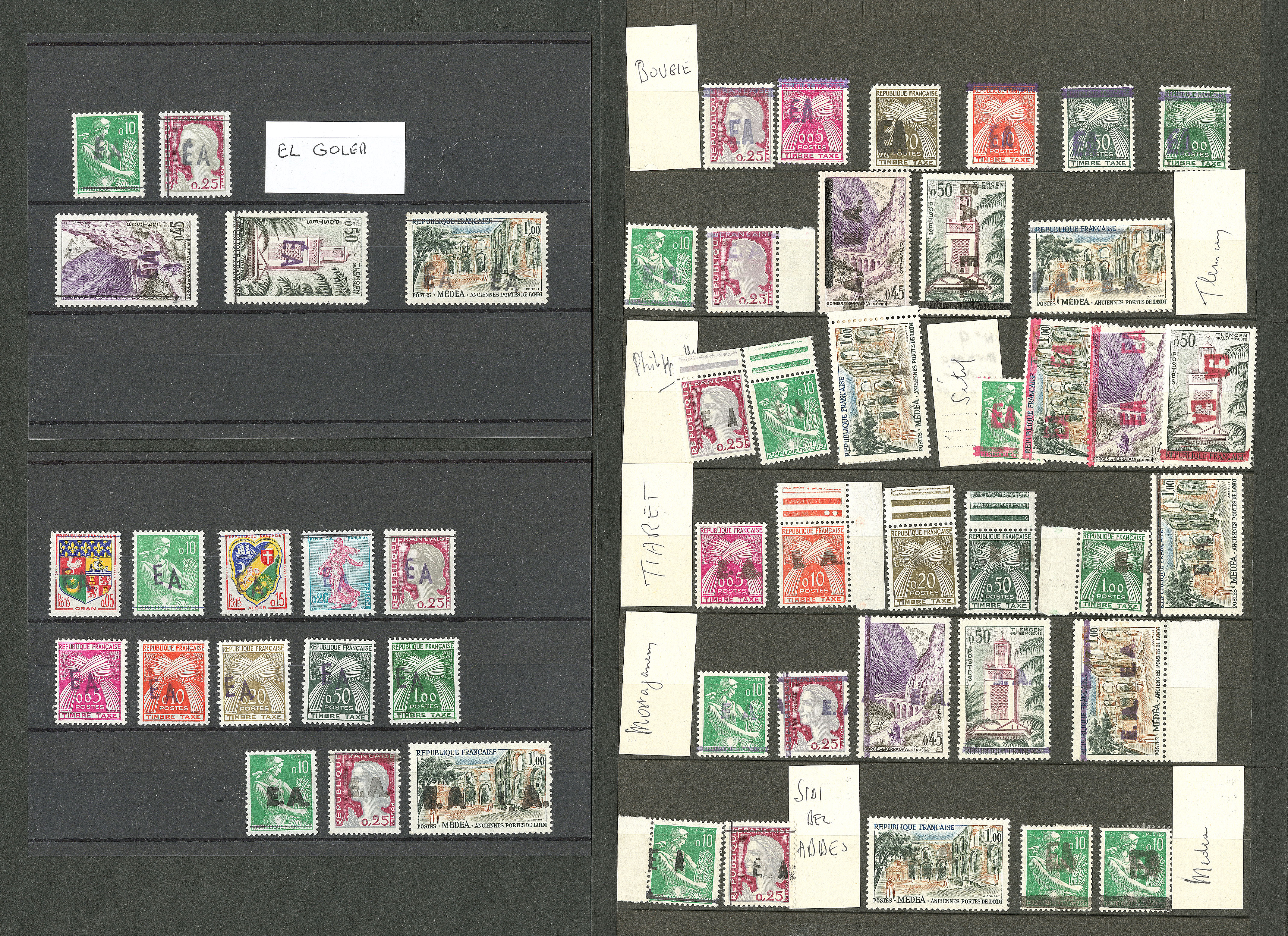 | ** | 1529 | ALGERIE. ** Surcharge "E A" sur timbres de France. No 1263 (22), avec surcharges différentes. - TB | 22 | - | 80€ | - | |