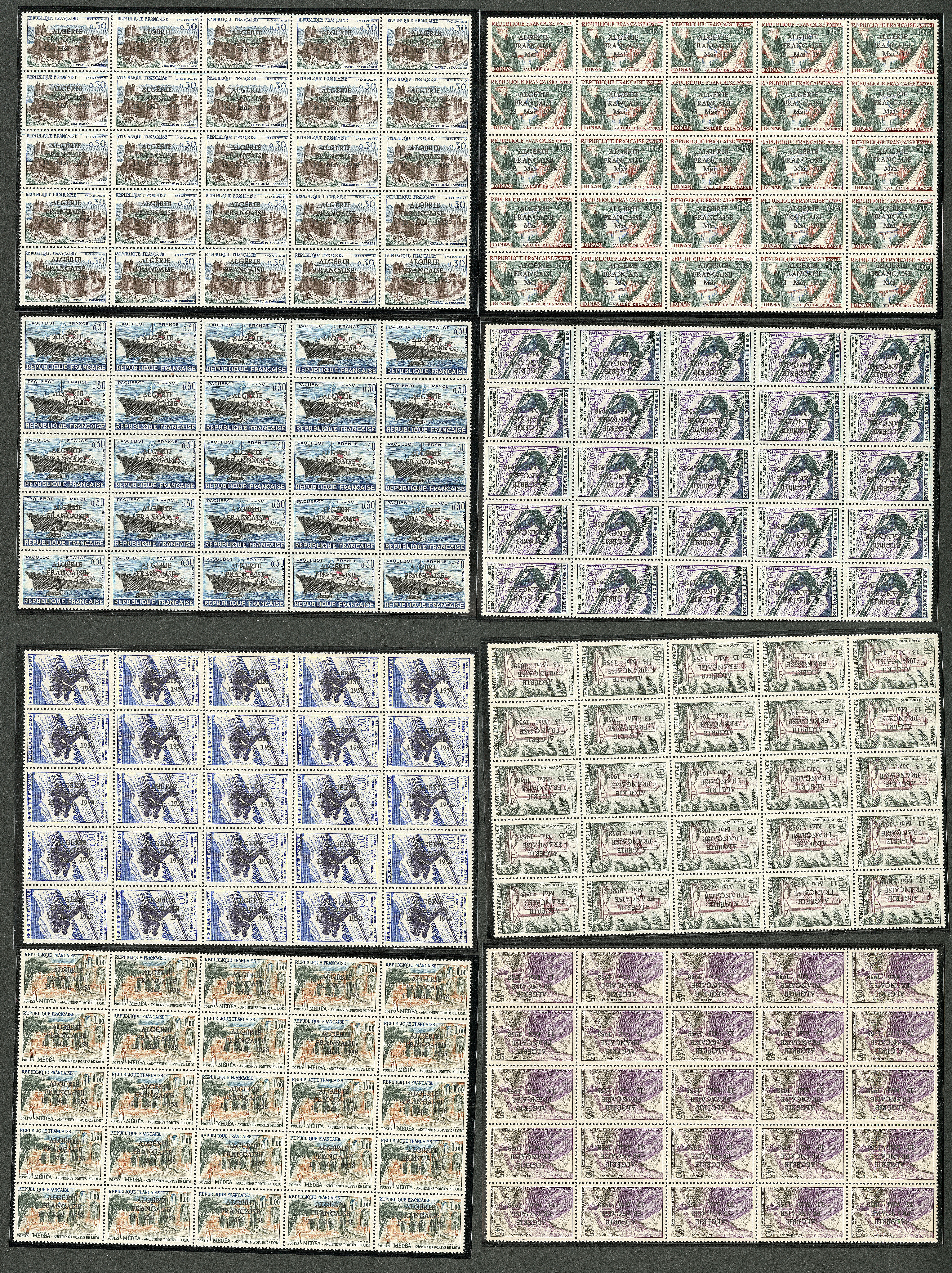 | ** | 1519 | ALGERIE. ** 2e surcharge "Algérie française 13 Mai 1958. 15ex Poste entre les N°1236 et 1327, tous en panneaux de 25ex. - TB | 375 | - | 1200€ | vendu 1200€ | |