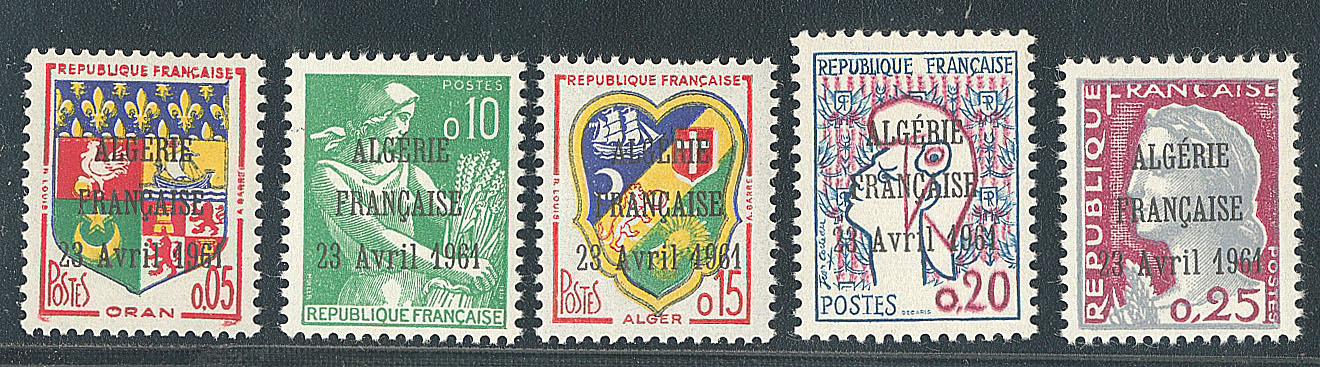 | ** | 1522 | ALGERIE. ** Surcharge "Algérie française 23 Avril 1961" pour le putsch d'Alger. Nos 1230A à 1232, 1263, 1282. - TB | 5 | - | 50€ | vendu 165€ | |