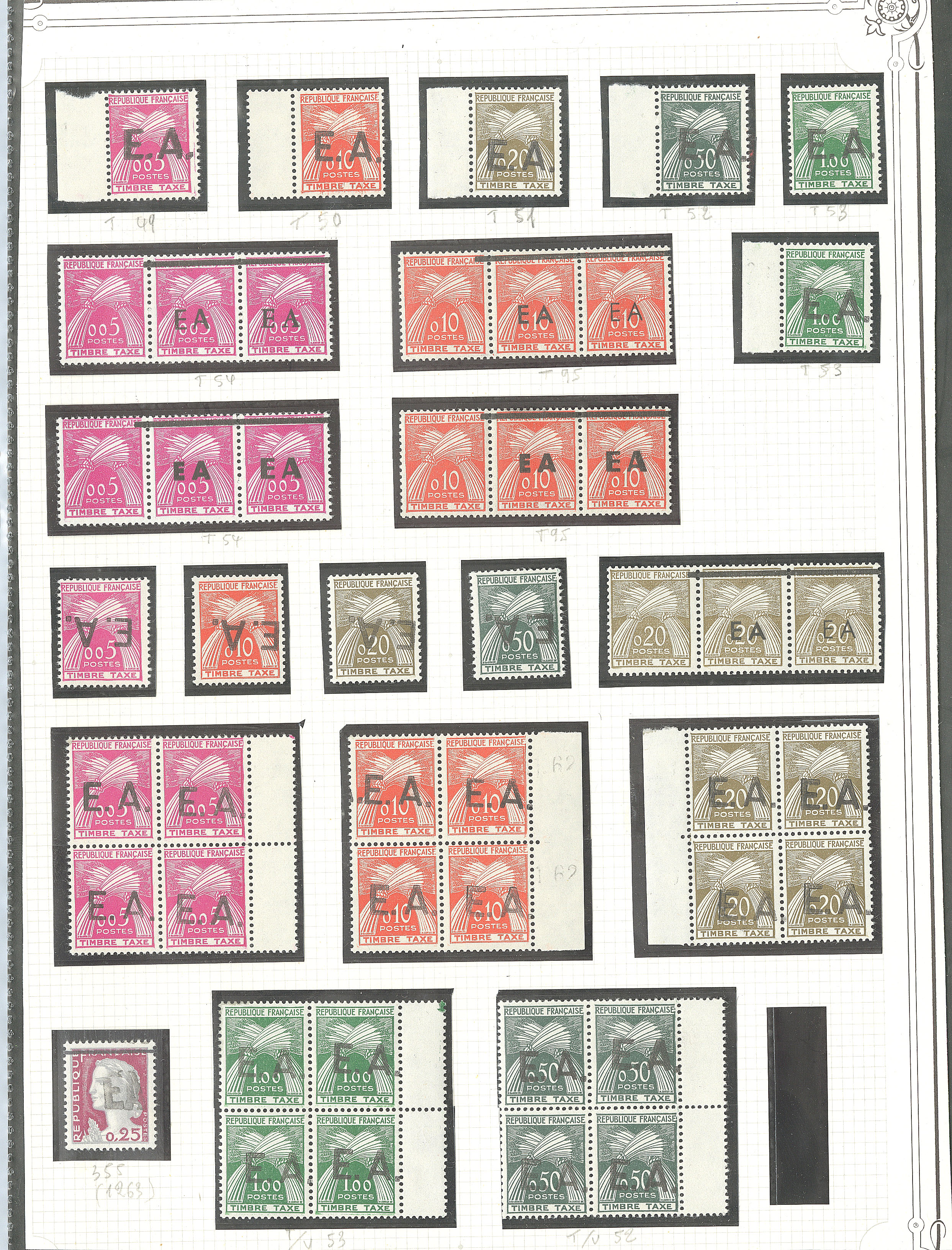 | ** | 1533 | ALGERIE. ** Surcharge "E A" sur timbres de France. Taxe. Nos 49 à 53, 7 séries avec surcharges différentes. - TB | 35 | - | 150€ | - | |