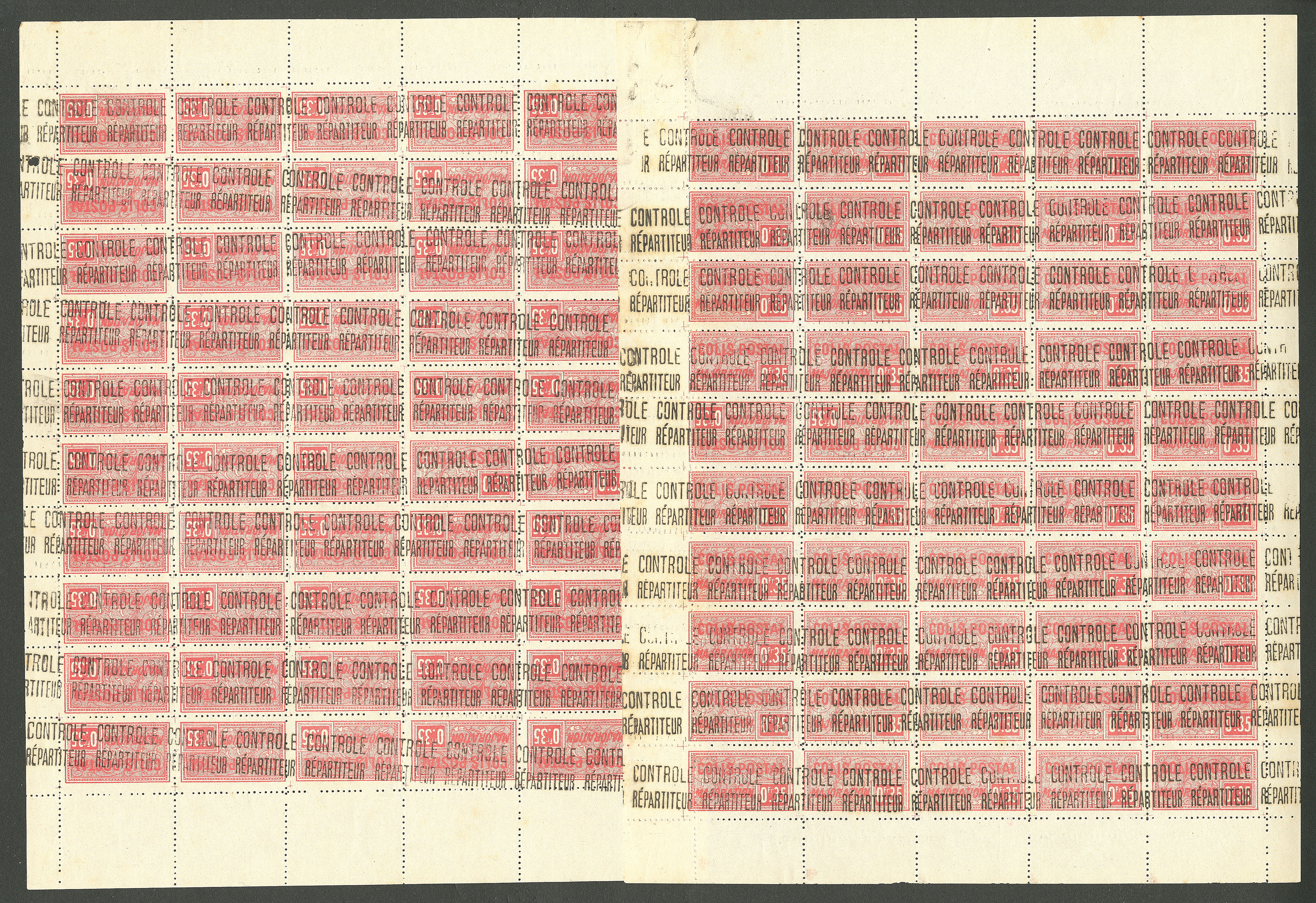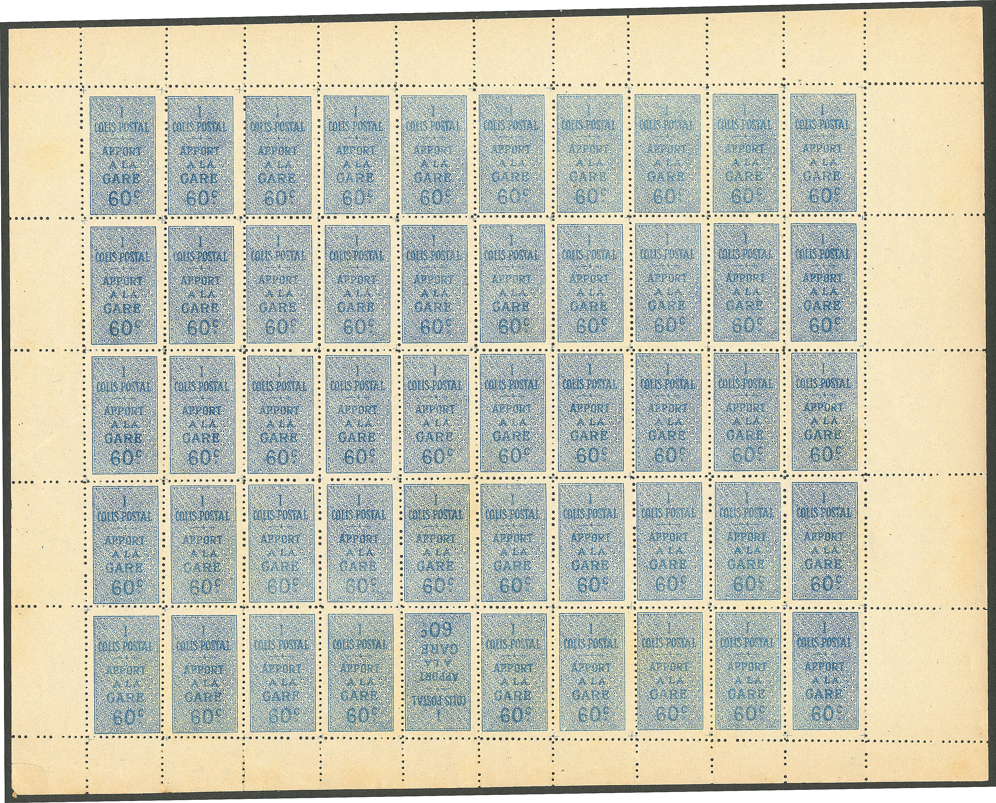 | ** | 1537 | ALGERIE. ** Colis postaux. Tête-bêche, sans "Contrôle/répartiteur". No 7Cba, dans une feuille complète de 50 ex, 7 ex pli et qqs légères rousseurs au verso sinon superbe. - RR (cote Yvert) | 50 | 42090€ | 4500€ | - | |