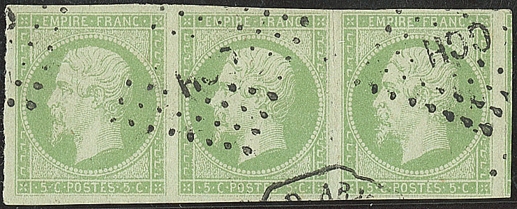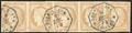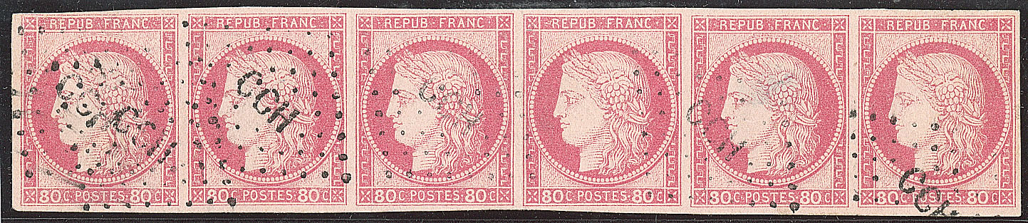 1626 COCHINCHINE.Précurseurs. CG 21, bande de six obl losange "CCH" (4 frappes lisibles), deux ex pd. - TB 6 - 300€ -