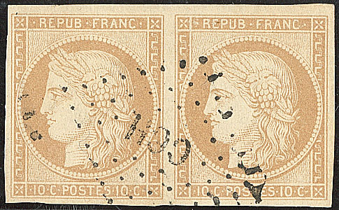 1618 COCHINCHINE.Précurseurs. CG 10, paire obl losange "CCH". - TB (cote Yvert) 2 320€ 100€ vendu