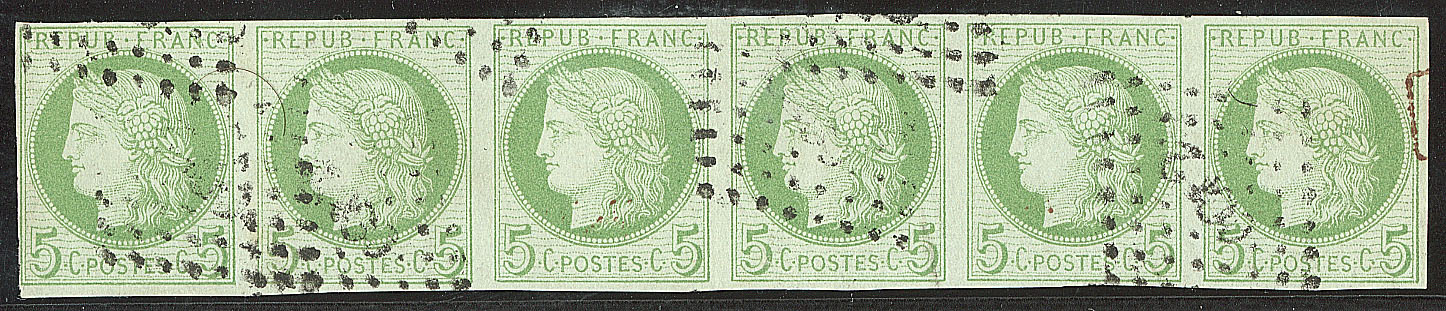 1625 COCHINCHINE.Précurseurs. CG 17, bande de six obl losange "CCN2" (une seule frappe lisible), un ex pli. - TB 6 - 250€ -