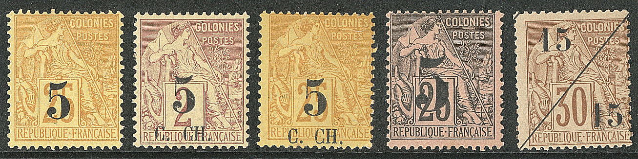 * 1635 COCHINCHINE. * Nos 1 (*), 2 pli, 3, 4, 5 *. - TB (cote Yvert) 5 555€ 50€ vendu