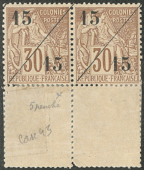 * 1637 COCHINCHINE. * "5" penché. No 5a (case 43), en paire TAN. - TB (cote Yvert) 2 1020€ 200€ vendu