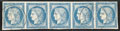 1632 COCHINCHINE.Précurseurs. CG 23, bande de cinq obl cad Saïgon déc 77, un ex pli. - TB 5 - 80€ -