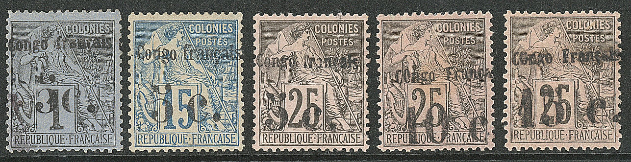 | * | 1638 | CONGO FRANÇAIS. * Nos 1 aminci, 2, 4, 5, 7. - TB ou B (cote Yvert) | 5 | 1890€ | 250€ | - | |