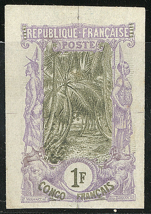 | (*) | 1643 | CONGO FRANÇAIS. (*) Essai 1f violet et gris, épreuve géante sur papier épais. No 39. - TB | 1 | - | 100€ | vendu 176€ | |