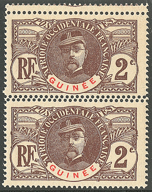 | ** | 1859 | GUINEE FRANÇAISE. ** Double piquage. No 34, paire verticale avec double perforation horizontale. - TB | 2 | - | 150€ | vendu 317€ | |