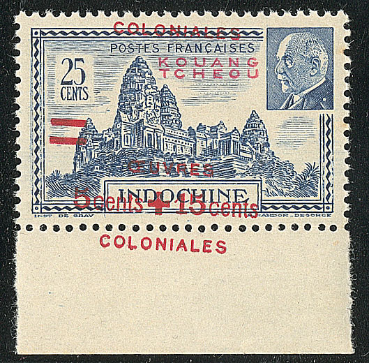 ** 1925 KOUANG-TCHEOU. ** Surcharge à cheval. No 156a, bdf. - TB (cote Yvert) 1 160€ 40€ vendu