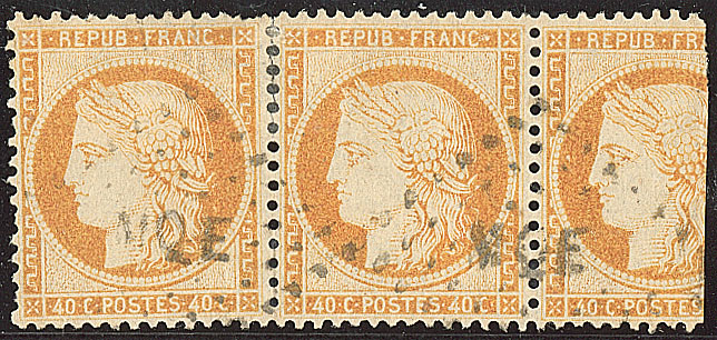 | 1961 | MARTINIQUE.Précurseurs. CG N°3d timbre couché à gauche d'un bande de trois, obl losange "MQE". - TB (cote Yvert) | 3 | 800€ | 150€ | vendu 219€ | ||
