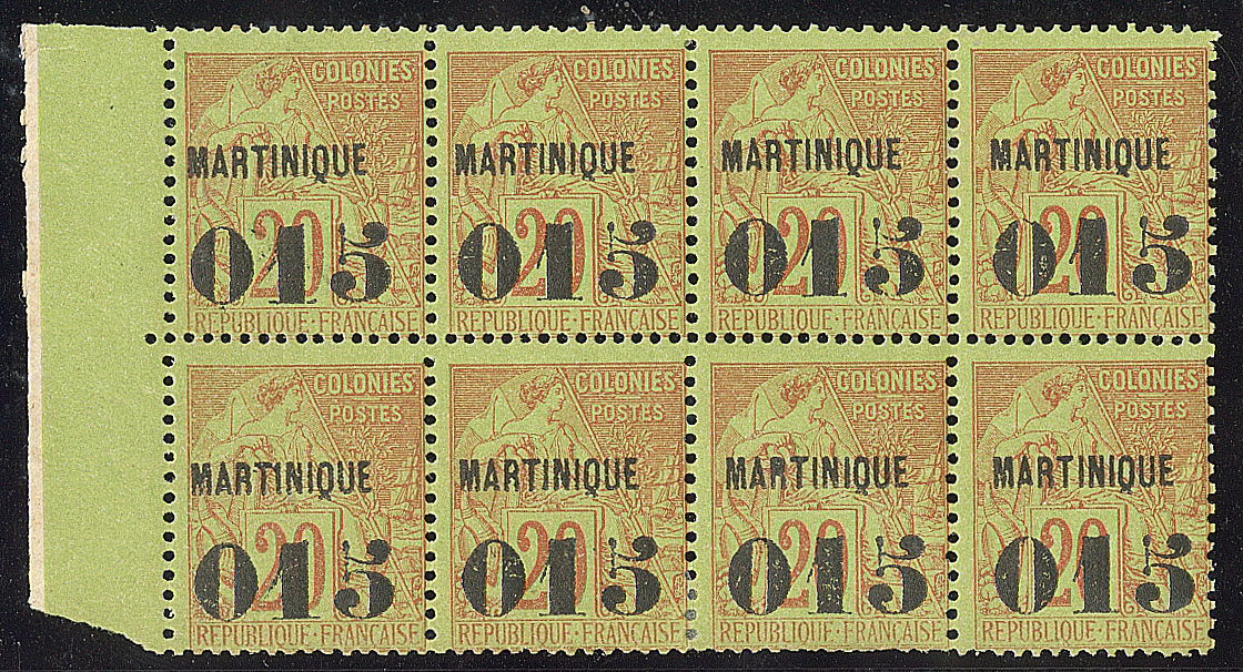 | * | 1977 | MARTINIQUE. * No 6, bloc de huit bdf, 4 ex * et qqs rousseurs au verso sinon TB (cote Yvert) | 8 | 1260€ | 180€ | - | |