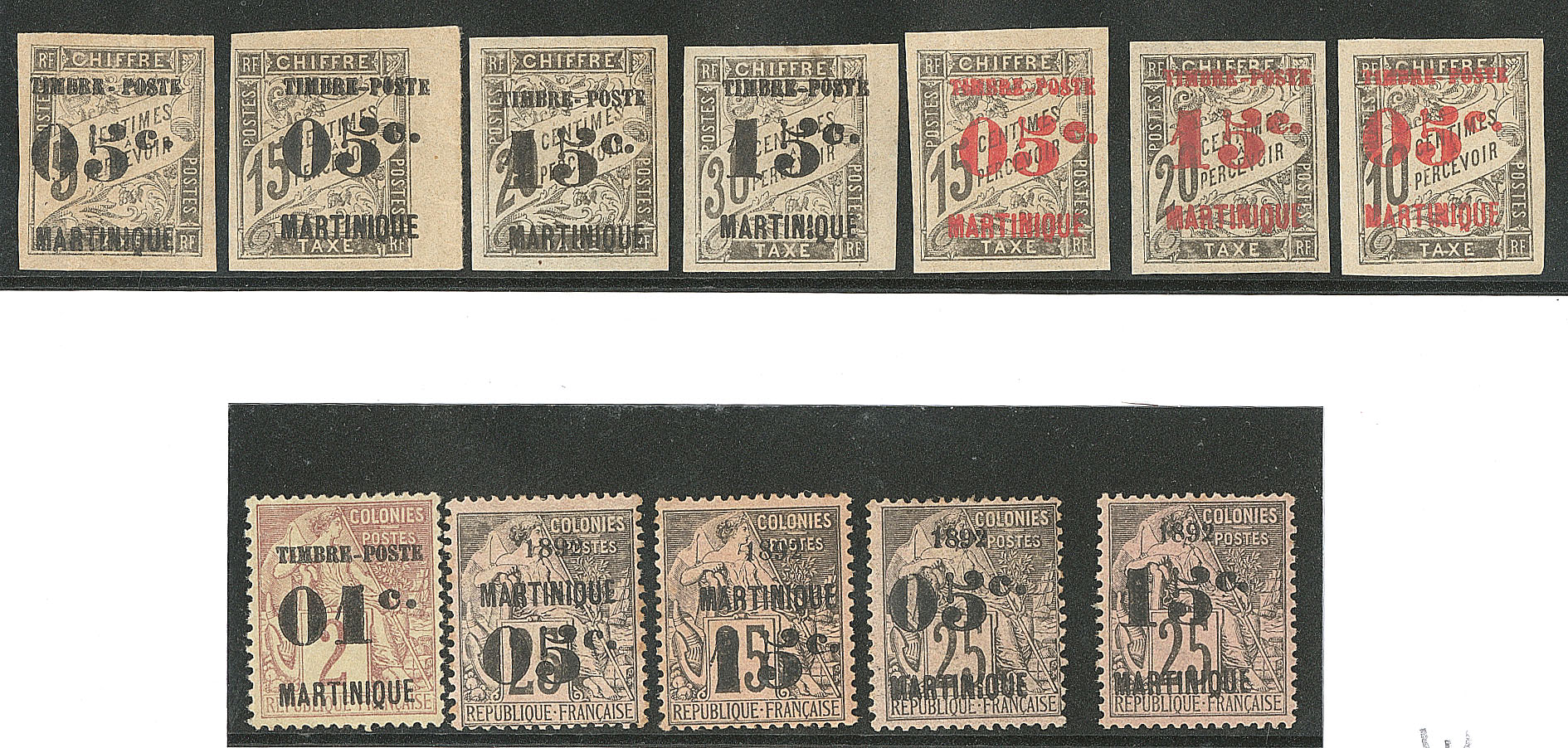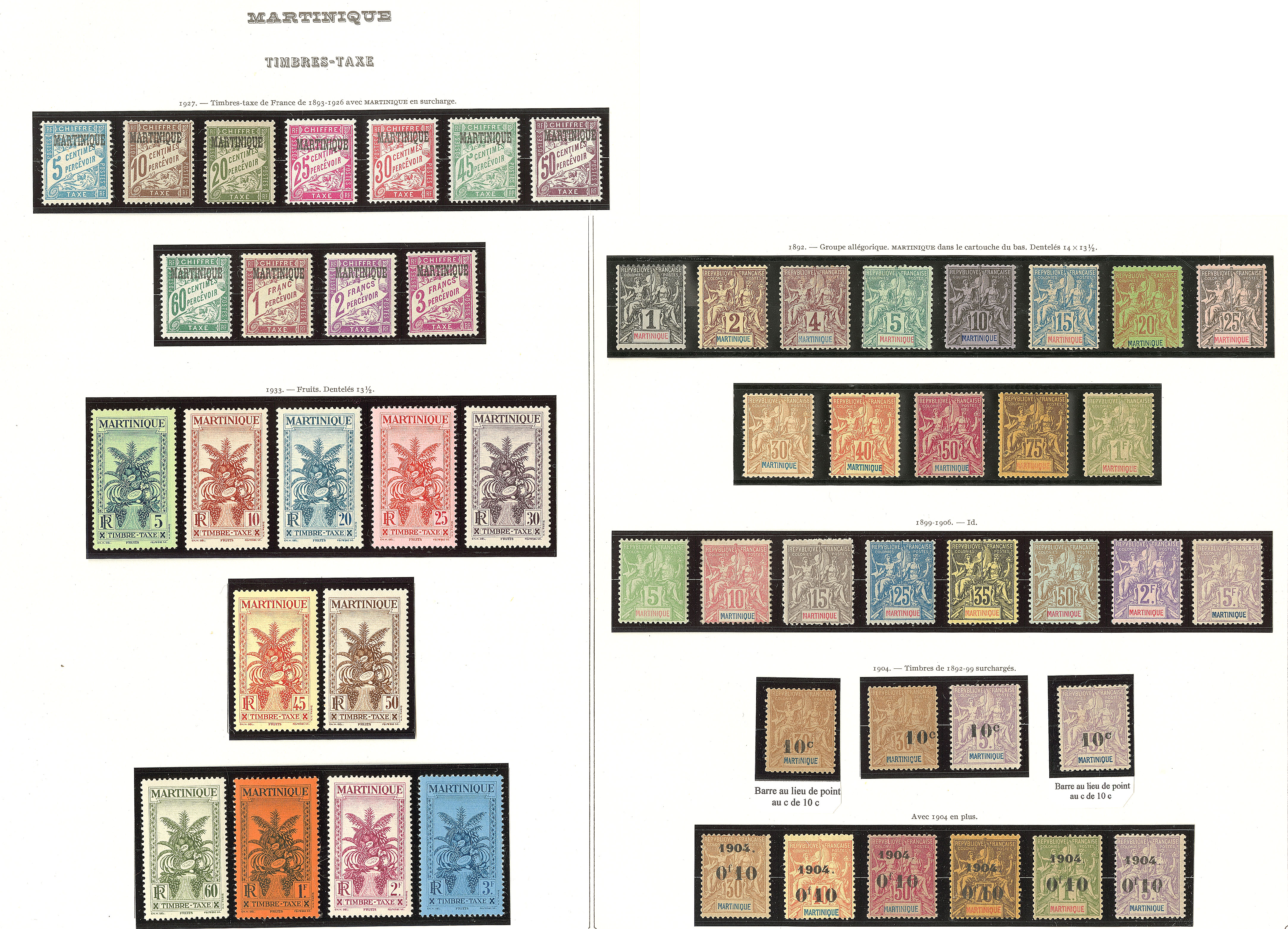 | ** | 1972 | MARTINIQUE. ** Nos 1, 3, 4, 7, 8, 10, 11, 13, 14, 18 (froissure). - TB (cote Yvert) | 10 | 1015€ | 100€ | vendu 158€ | |