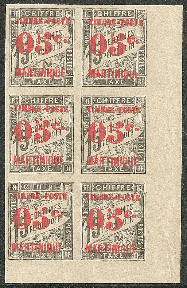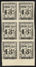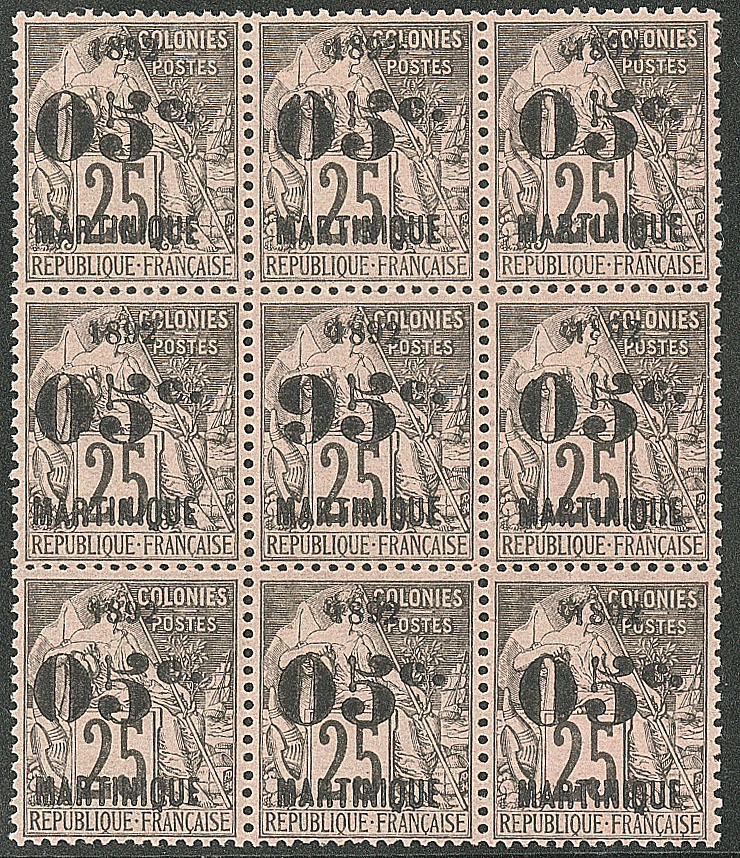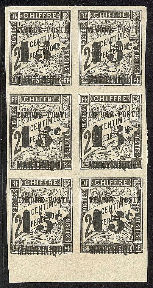 | ** | 1982 | MARTINIQUE. ** No 21, bloc de six bdf dont un ex avec "5" cassé *, un ex *. - TB (cote Yvert) | 6 | 270€ | 50€ | - | |