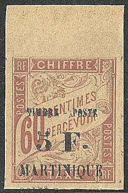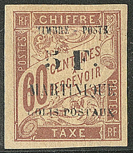 | ** | 1991 | MARTINIQUE. ** Sans "Colis postaux". No 60b bdf (case 2), point de rousseur au verso mais TB. - R (cote Yvert) | 1 | 2800€ | 250€ | - | |