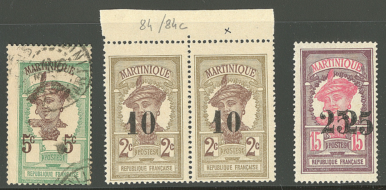 | * | 1992 | MARTINIQUE. * Variétés. Nos 64b obl, 84d paire bdf **, 85b. - TB | 4 | - | 70€ | - | |