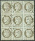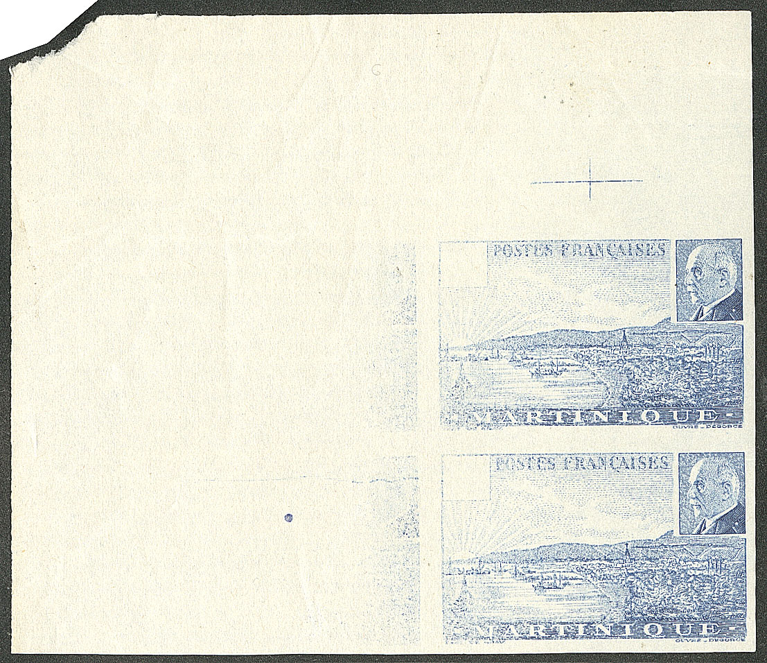 | 1970 | MARTINIQUE.Précurseurs. CG 14, bloc de neuf obl losange "MQE", plis mais TB | 9 | - | 300€ | - | ||