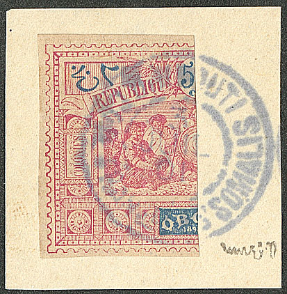 2097 OBOCK.Coupés. No 57a, sur petit fragment. - TB. - R (cote Yvert) 1 2000€ 300€ vendu