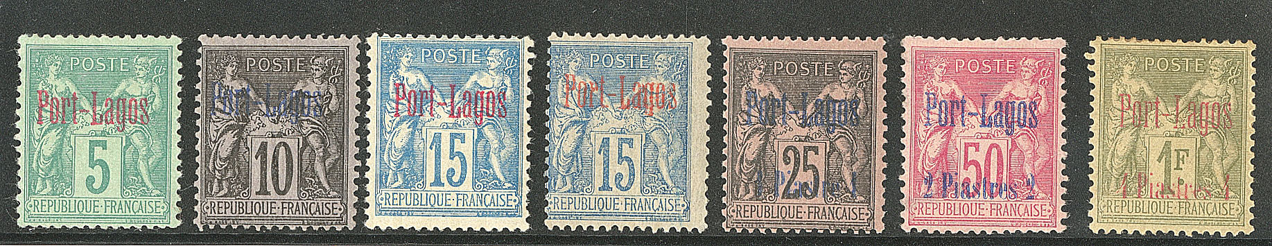 * 2111 PORT-LAGOS. * Nos 1 à 6, 3a, le 5 pli, les autres TB (cote Yvert) 7 930€ 100€ vendu