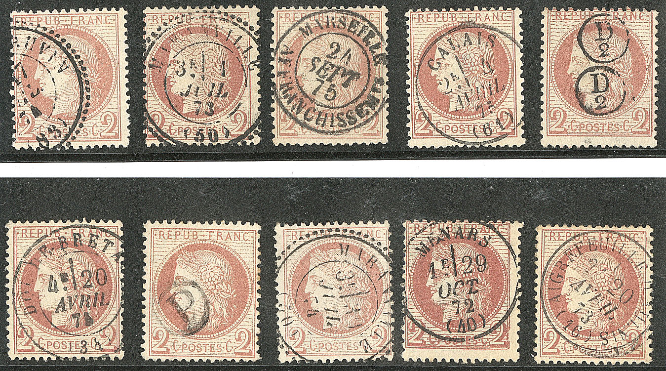 | 495 | CERES 1871-1875.No 52, dix ex obl choisies. - TB | 10 | - | 100€ | vendu 125€ | ||